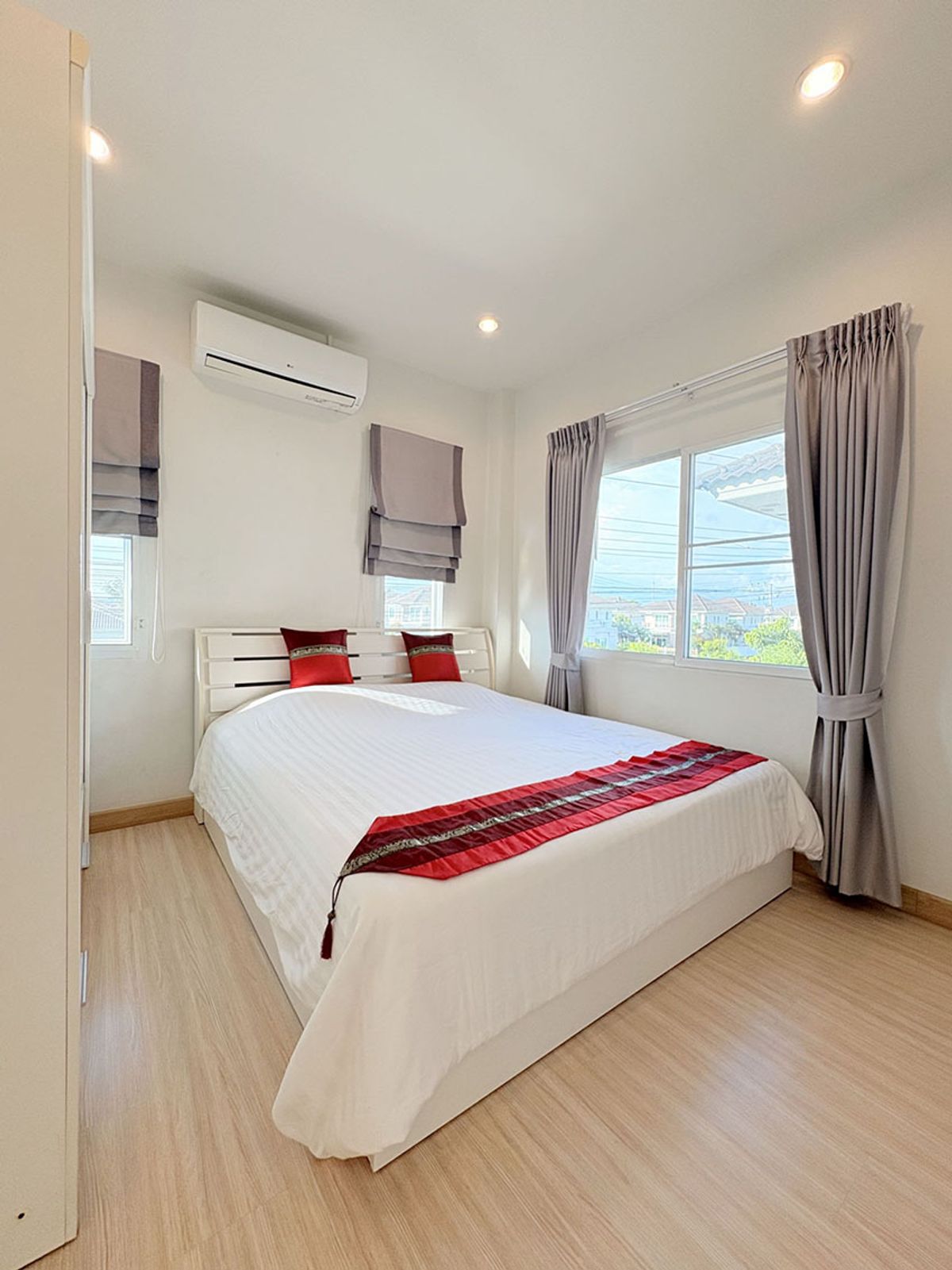 Beautiful house in the project Rent 25,000 baht per month. Near Luck Plaza, only 10 minutes. No.5H601 清迈美丽的 2 层别墅出租。。。 25,000 泰铢,。。。。。。。 。5H601 Two -story house with 3 bedrooms, 3 bathrooms, area 52 s