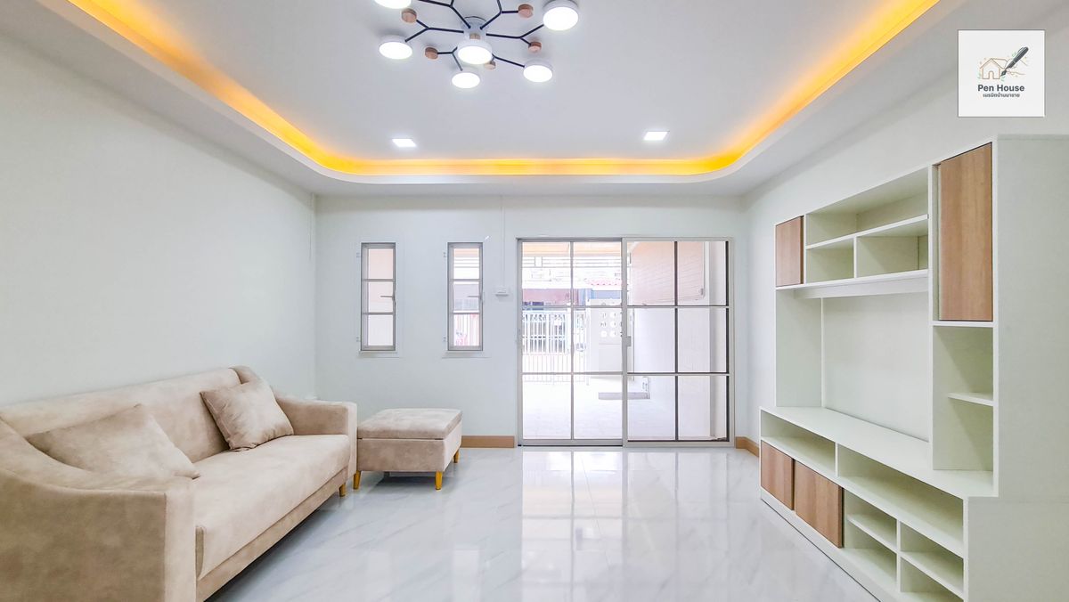 Type: 2 -story townhouse Location: Sena Villa Village 8 Phraya Suren 42 Road Sam Wa Tawan Khlong Sam Wa District Bangkok Area: 19 square wah 3 bedrooms, 2 bathrooms, 1 car park, 1 kitchen, 1 living room Nearby places - Chokchai School Hathairat - Nawaminthrachinuthit School Benjamachalai - Intharat Hospital - Nopparat Ratchanee Hospital - The flea market, Phra Phrom Intersection (? Mr. Yai Market - Lotus Ko Fresh along the Khlong Song Bang Chan Station - Near Jatujot Expressway - Connect Khubon Road Ram Inthra Interested in making an appointment to see the house. Or ask for more information at Tel. : Contact number Om Line: @pens.house (with @too) : Openlink.co/penhouse - Interior - New tiles Create a new kitchen counter - Free gas stove with a hood - Free TV sofa set - Free dining table set