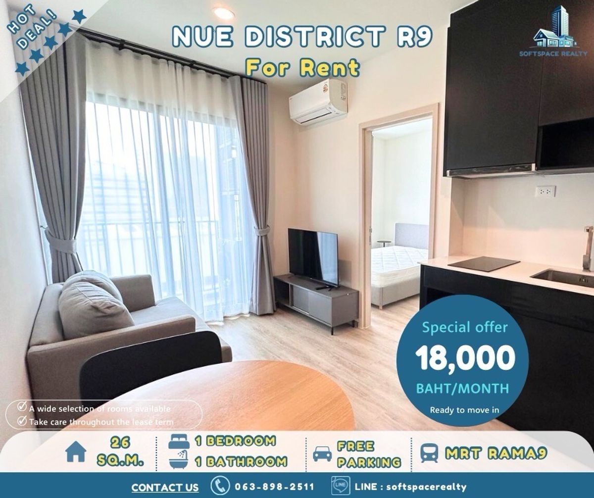 🌟 NUE DISTRICT RAMA 9 🌟 💰 เช่า | Rent: 18,000 THB/Month 📅 สัญญาเช่า 1 ปี | 1-Year Contract 🌸 รายละเอียดห้อง | Unit Details 📍 ทำเล: ใจกลางพระราม 9 • ขนาด: 26 ตร.ม. | 1 ห้องนอน 1 ห้องน้ำ • ชั้น: 20 (อาค