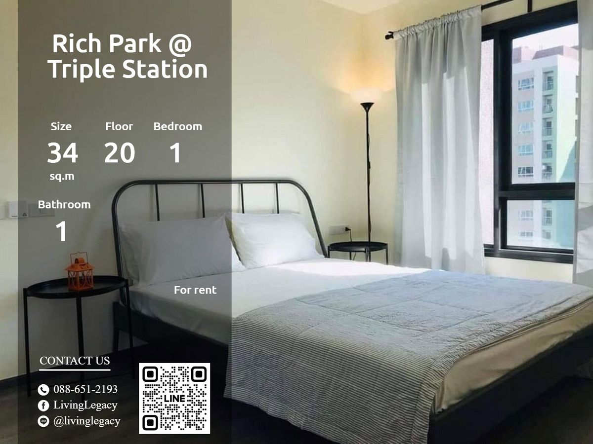 🏠 SIK0J5 Condo for Rich Park @ Triple Station 34 sq.m., 20th floor, 1 bedroom, 1 water ✨ Ready to stay immediately! Complete beautiful room Ready to move in! 🔍 Details - Number of bedrooms: 1 - Bathro