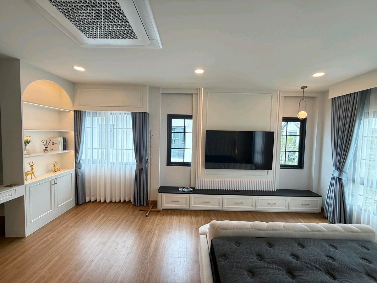 Luxury houses with beautiful decorative furniture for rent in Bang Na-Bang Kaew area 2 floors, 4 bedrooms, 5 bathrooms, 1 housekeeper Size 65 sq.w., 303 square meters of living space , House with furn