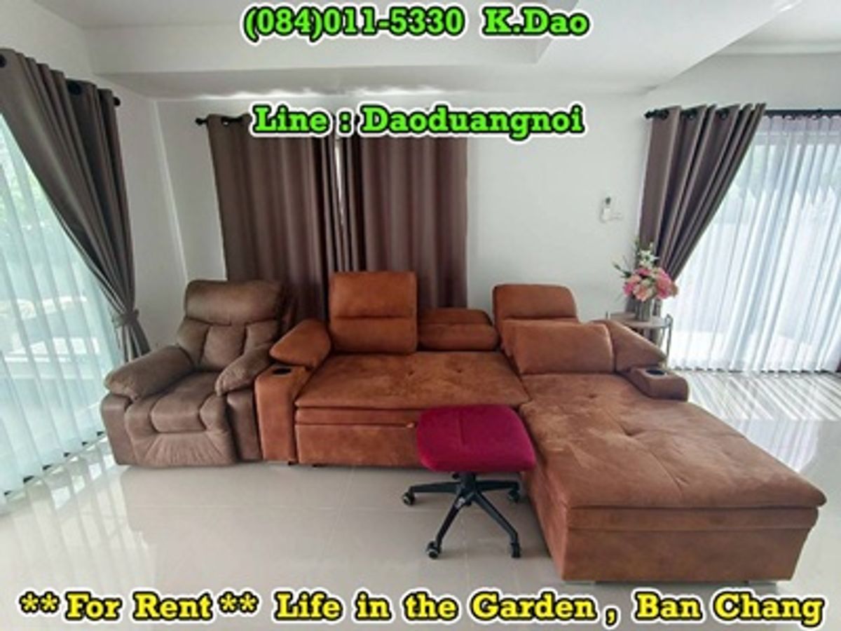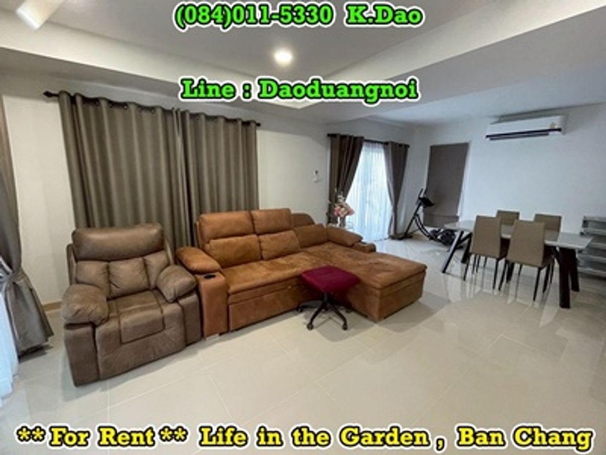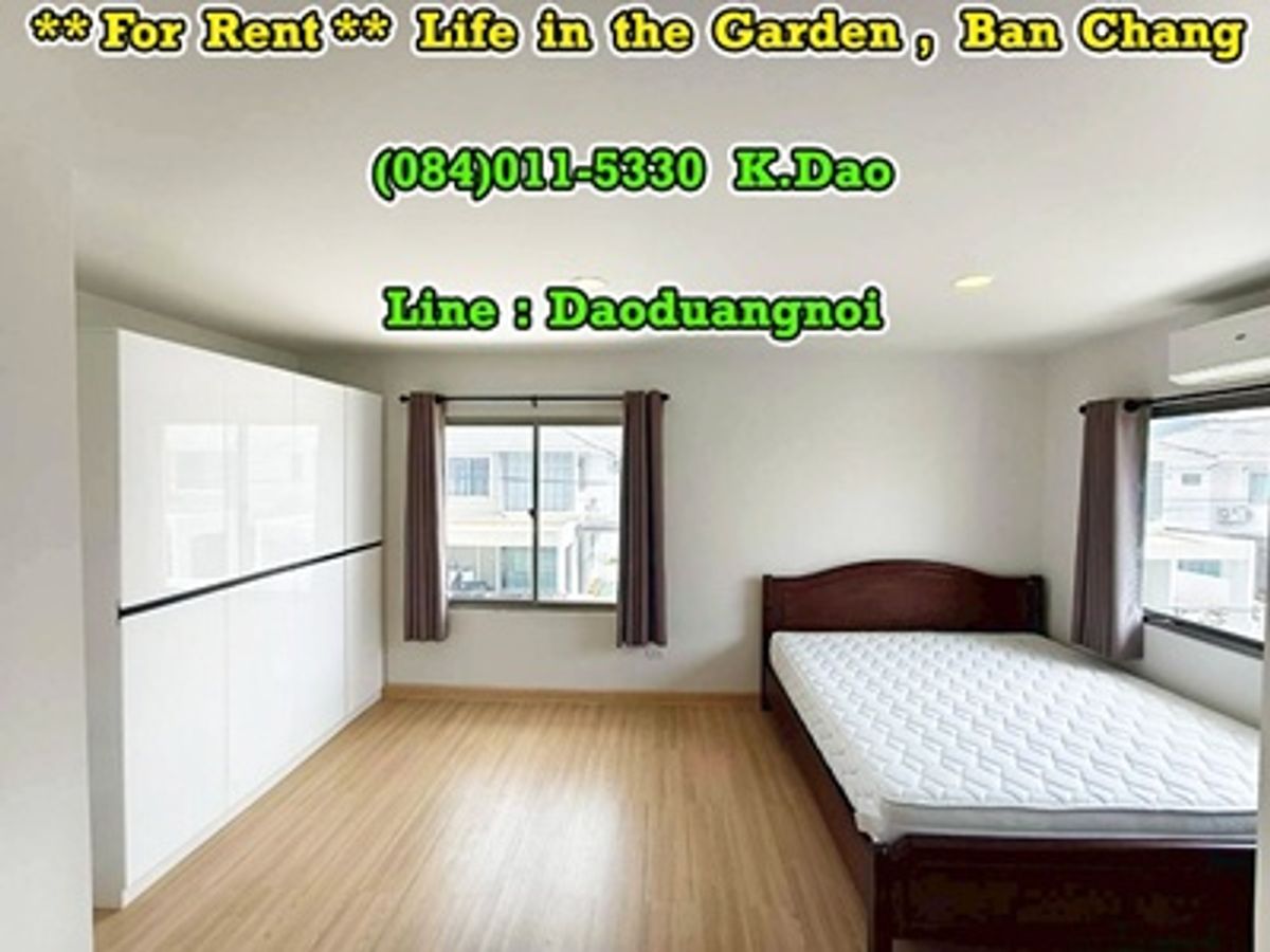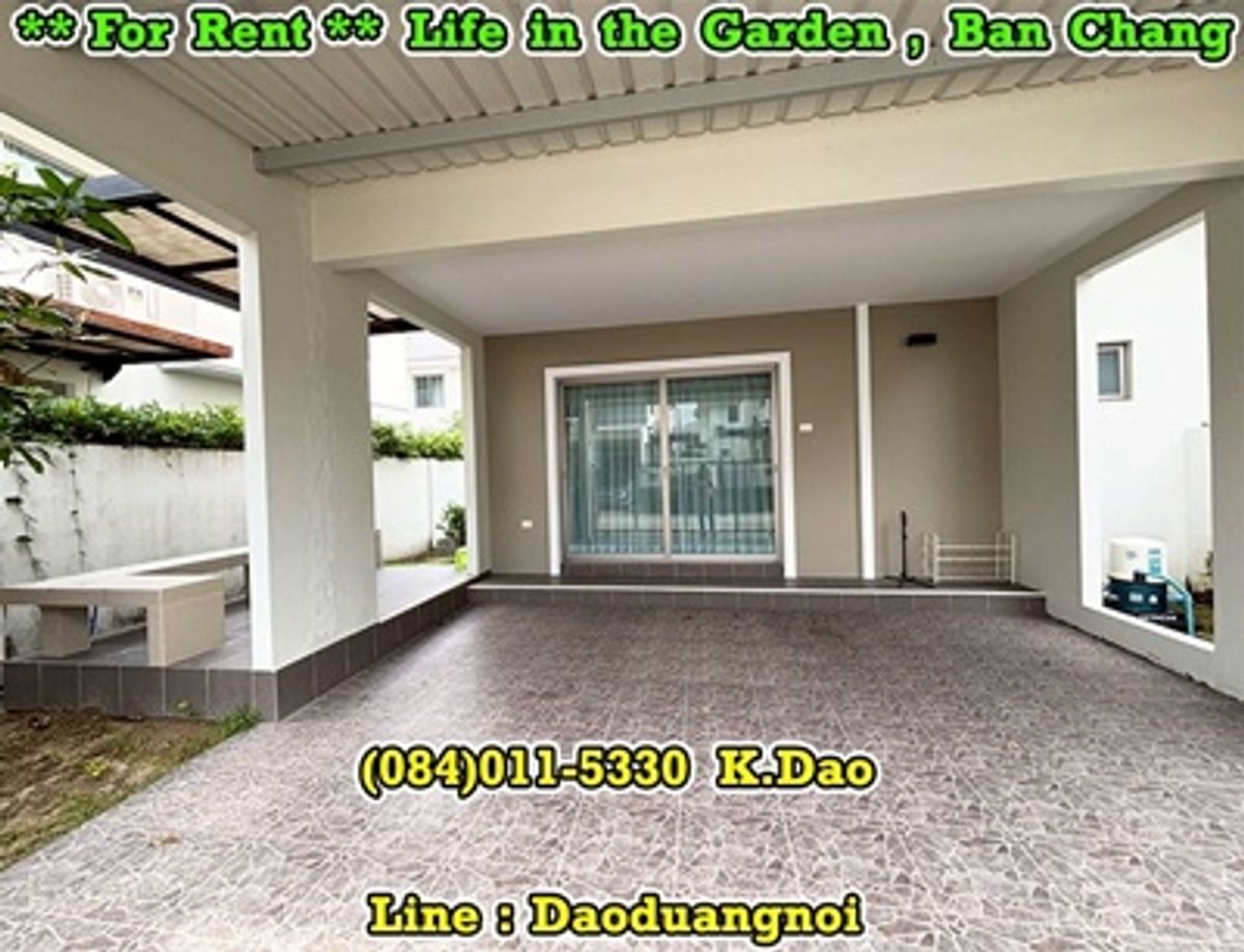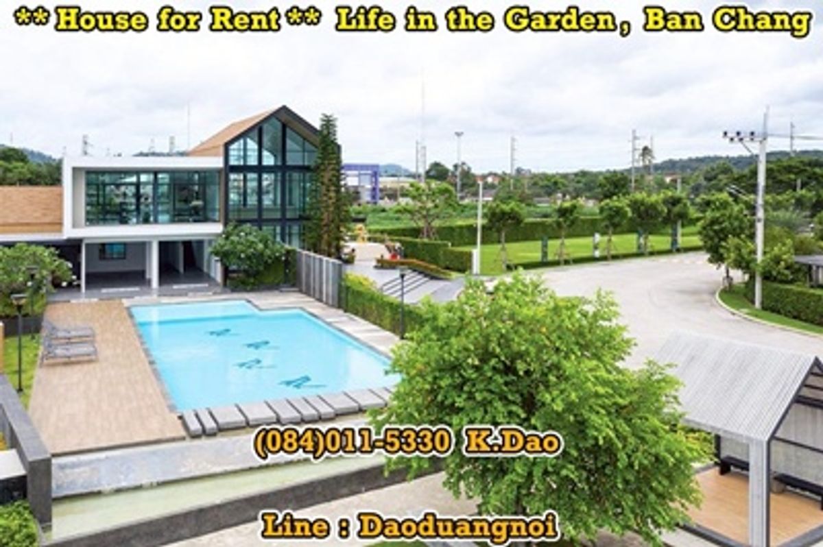 +++ House for Rent +++ Life in the Garden, Ban Chang Near Robinson Lifestyle Ban Chang This village is logated on Sukhumvit Road. Restaurant, French and Italian Restaurant, Laundry Bar. Location: https://goo.gl/maps/mdhxpodwgpyvjtzx9 (?(? SQR.M. 3 Bedrooms 3 Bathrooms 1 Living Room 1 Kitchen 1 Laundry Area 2 Parking *** RENTAL FEE 20,000 Baht *** Facility PlayGround - Small Soccer Field with Mini Football Goals - Outdoor Half Basketball Court - Jogging Lane 1.2 km.- Community Park With Playgrund - Pavilions (? Village - CCTVS - 24-Hour Security Guards Contact for reinning with dao. Tel. : (084) 011-5330 Line ID: Daoduangnoi Whatsapp: Contact number Https://www.facebook.com/thepastelproperty