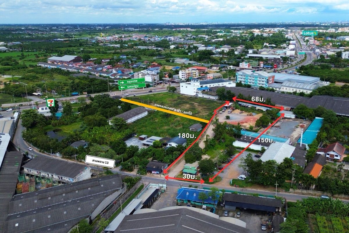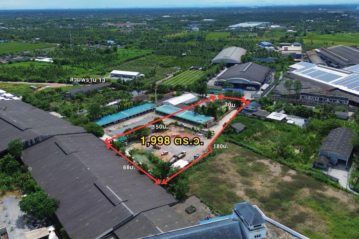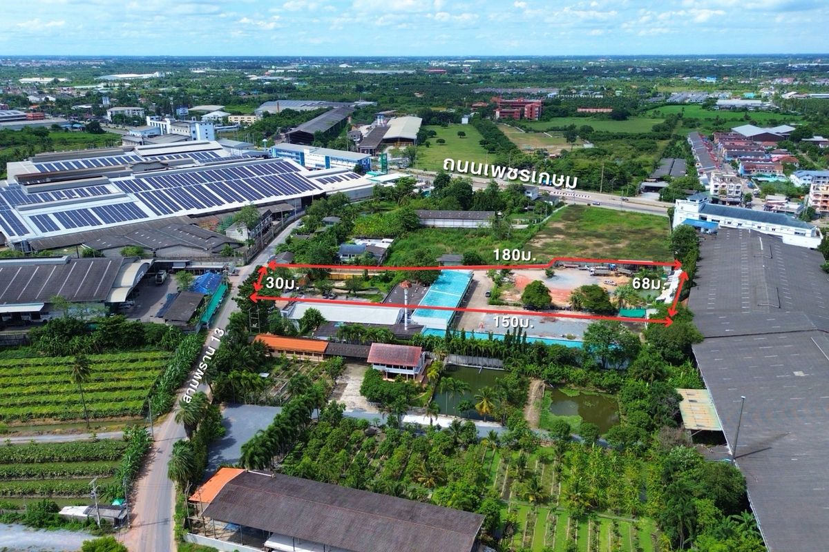 📍 Sampran Road 13 → 200 m. To Petchkasem! Pink land plan, almost 5 rai (4-3-98 rai) 💰 Both plots only 27.8 million (14,000/sq.w.) Invest in warehouses/factory/apartment or can store Land Bank straight