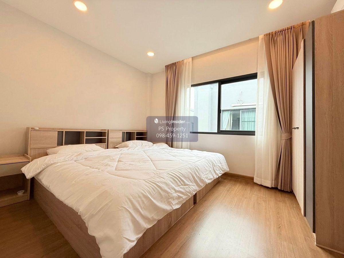 Price: 95,000 baht / month Usable area: 209 sq.m. Area: 55 sq.w. Floor: 2 4 bedrooms / 4 bathrooms / 1 living room / 2 parking spaces Amenities: CCTV, key card Access, fitness center, swimming pool, 24/7 security guard, co-working area, common area. Furniture included: TV, microwave, sofa, refrigerator, bed, air conditioner, water heater, Smoke Dispenser, shelf, TV cabinet, wardrobe, center table. House for rent! convenient transportation, near BTS, near the expressway, fully furnished Ready for viewing. Interested please contact: 📞Call center: Contact number 📱Hotline: Contact number 📲Whatsapp: Contact number 🖱️Line: @psproperty https://lin.ee/d8bpOBs Website: https://www.ps-property.co.th/
