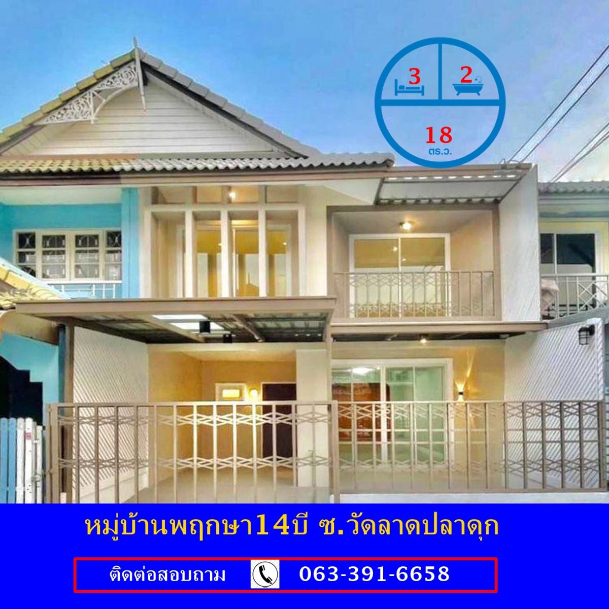 ขายทาวน์เฮ้าส์ เนื้อที่ 18 ตร.ว หมู่บ้านพฤกษา14บี ซ.วัดลาดปลาดุก ปรับปรุงใหม่ สวยพร้อมอยู่ รายละเอียดฟังก์ชั่น ทาวน์เฮ้าส์ 2 ชั้นเนื้อที่ 18 ตารางวา พื้นที่ใช้สอย 110 ตารางเมตร ห้องนอน : 3 ห้อง ห้องน้