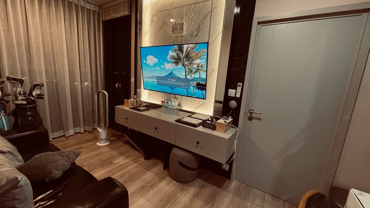 READY TO MOVE IN Modern Luxury Style (1 Bed Room Type). Highlight - High Floor with Bang Kachao River View. - Fully Furnished with Modern Luxury Style - Ready to Move In List of items complimentary. - Smart TV 55" in Living Room - Air Condition x 2 in Bed Rom and Living Room - Refrigerator (Ice Maker) - Shoe Cabinet for 40 pairs Line: voraphotc M: Contact number