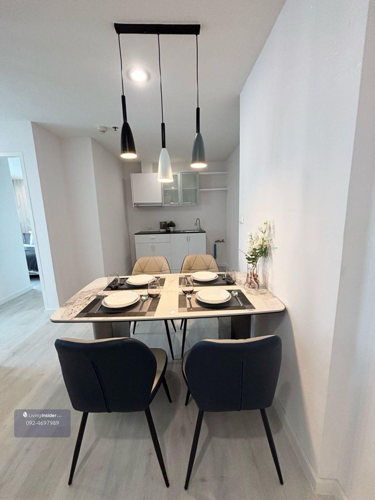 📍 The Next Condominium (The Next Ladprao 44) - This unit offers ample living space and complete home-like functionality, including a kitchen, dining room, living room, and 2 bedrooms and 2 bathrooms.