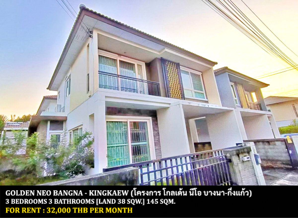 HOUSE FOR RENT PROPERTY PROJECT : Golden Neo Bangna - Kingkaew LOCATED : Kingkaew Rd. , Rachathewa , Bang Phli , Samut Prakarn PROPERTY TYPE : Semi Detached House BEDROOMS / BATHROOMS : 3 Bedrooms 3 Bathrooms LAND SIZE : 38 Sq.w. USABLE AREA : 145 Sq.m. CONDITION : Fully furnished NEARBY : - Siam Mandarina Hotel Suvarnabhumi Airport - Suvarnabhumi Airport ------------------------------------------------------- RENTAL PRICE : 32,000 Baht / Month ------------------------------------------------------- Please contact us for viewing or more details CALL : Contact number Nat [Nathan] LINE ID : @roomfinderthailand [Put @ Front ID] WHAT'S APP : Contact number WECHAT : saintz69 EMAIL : Contact email llllllllllllllllllllllllllllllllllllllllllllllllllllllllllllllllllllllllllllllllllllllll ROOMFINDER (THAILAND) CO.,LTD. PROPERTY AGENTS HOMEPAGE : www.facebook.com/roomfinderthailand ------------------------------------------------------- บริษัท รูมไฟเดอร์ (ไทยแลนด์) จำกัด ตัวแทนรับฝาก ขาย เช่า อสังหาริมทรัพย์ทุกชนิด