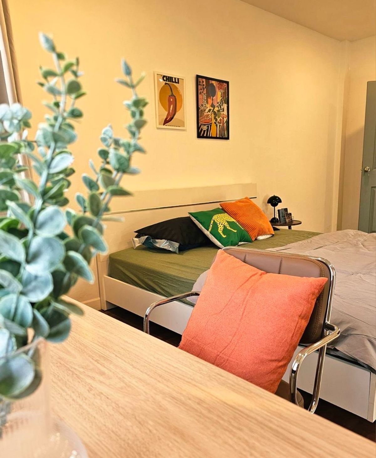 Two-story townhouse on Lat Phrao 110 Road, fully furnished, air-conditioned, 90 square meters, 2 bedrooms, 2 bathrooms, monthly rental price 22,500 baht, pets welcome, near The Mall Bangkapi. Contact Contact number line - simon3589 whatsapp - Contact number