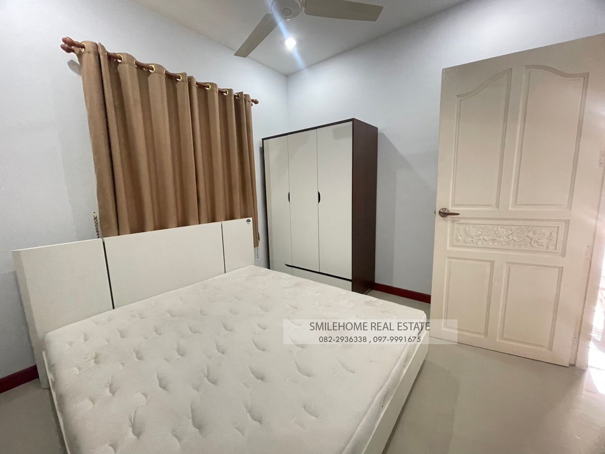 House for rent one-story house 3bedroom 2toilet 1 kitchen 2 parking price 17,000/month not allow pets 4 airconditions 3 Bed, mattress, wadrobe 1 TV, shelf 1 sofa, coffer table 1 dining table 1 set 1 refrigerator 1 washing machine near Market, Tesco lotus, 7-11 the contract minimum 1 year pay 3 months (2months deposit + 1 month in advance)