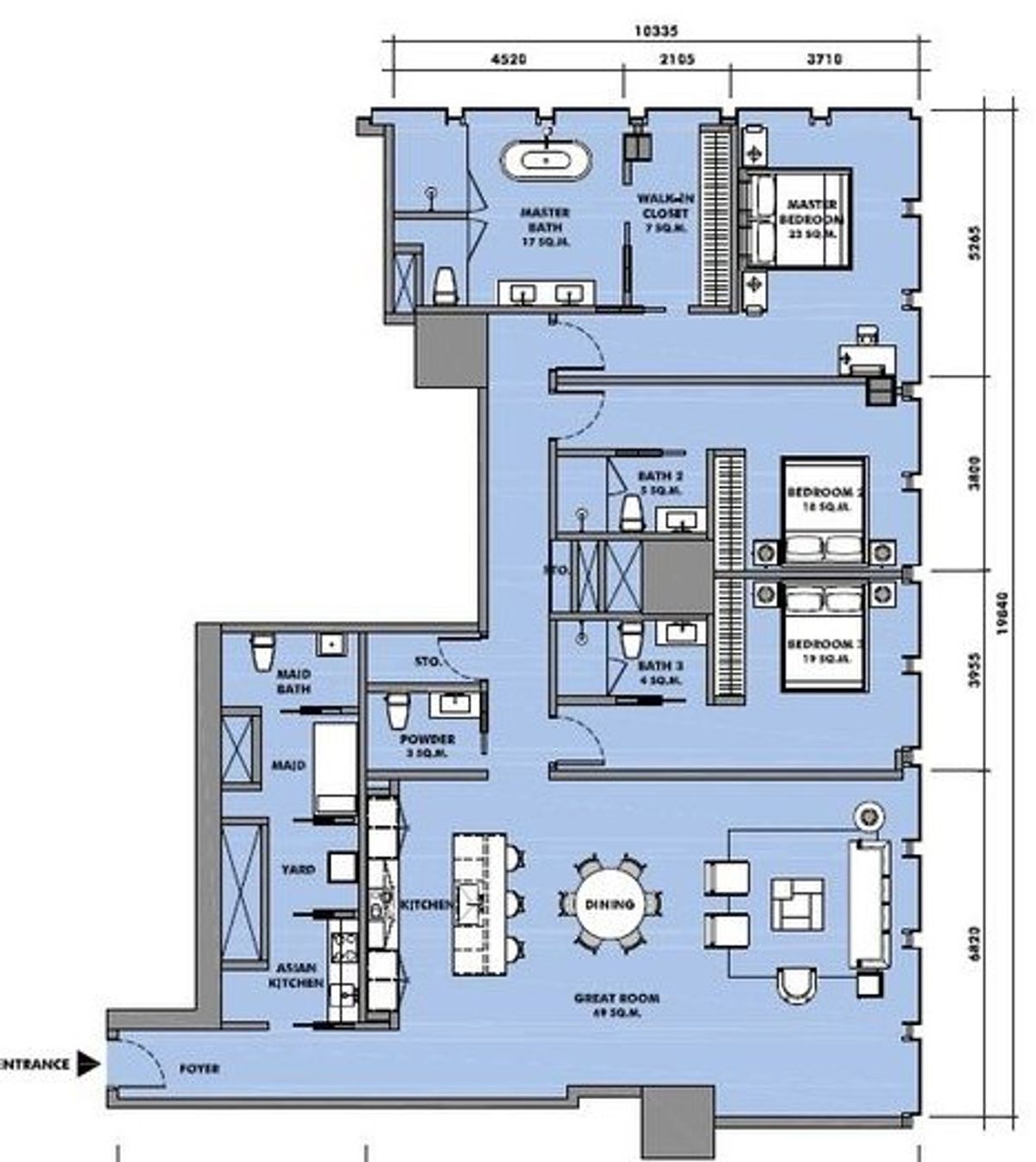This 3-bedroom unit with a spacious area of 211 sq.m. is situated on a high floor of The Ritz-Carlton Residences, offering a superior living experience. The interior is elegantly designed with generou