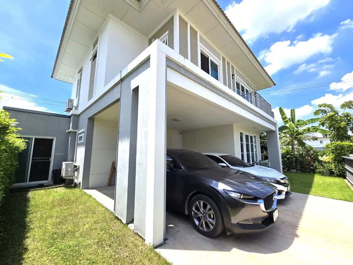 Rent a 2 -story detached house, Khunalai Village, Bang Bua Thong, near Kanchanaphisek Road The area is spacious after the corner is attached to the central garden.