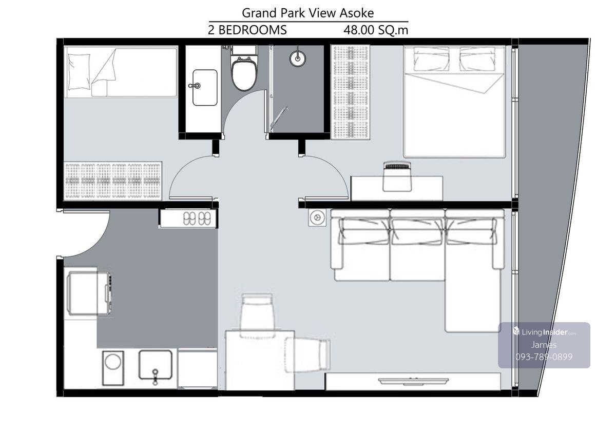 Grand Park View Asoke / 2 Bedrooms Near BTS, Asoke, MRT, Sukhumvit+ Phetchaburi / 2 Bedroom 48 Sq. Call Contact number Code: 87512 2 bedrooms, 1 bathroom Usable space 48 meters Selling price 4,9999999