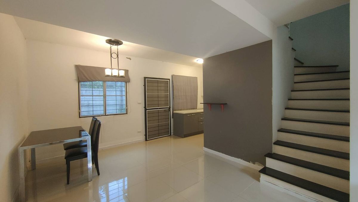 For rent Town home Preuksa 83, Salaya + 18 sq.wah + 3 bedrooms, 2 bathrooms, 2 floors + partly furnished (cabinets, dinner table set; as shown in photo) + provided with 2 air conditions and water heat