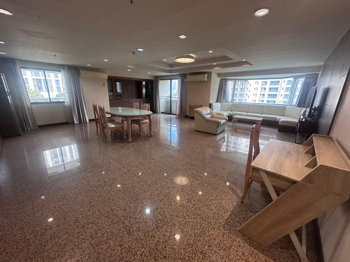 260 sq mtrs. 3 bedrooms, 3 bathrooms Large living dining areas, kitchen, balconies Maid’s room with bathroom. 2 parking cars Facilities - Lobby & Mailbox - Swimming pool - Fitness center - Multi-purpose rooms - Garden & relaxation area - Access card control - Passenger elevators - Parking - 24-hour security & CCTV BTS Phrom Phong 300 meters Rent: 85,000 baht/month Contact: Seasons One Real Estate Suchart: Contact number Vinit: Contact number Email: Contact email