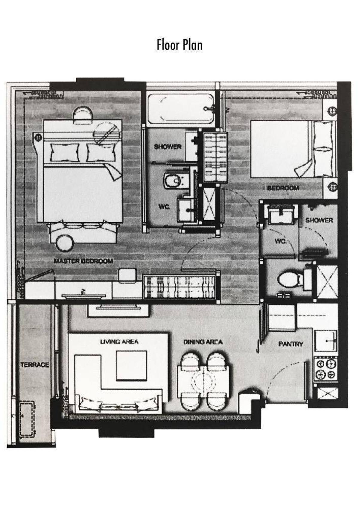 PropertyScout ID 1570856 Fully furnished 2 bedrooms, 2 bathrooms condo for rent with a floorsize of 58 squaremeters, located on the 5th floor, at Urbitia Thong Lo building, in the popular Khlong Toei
