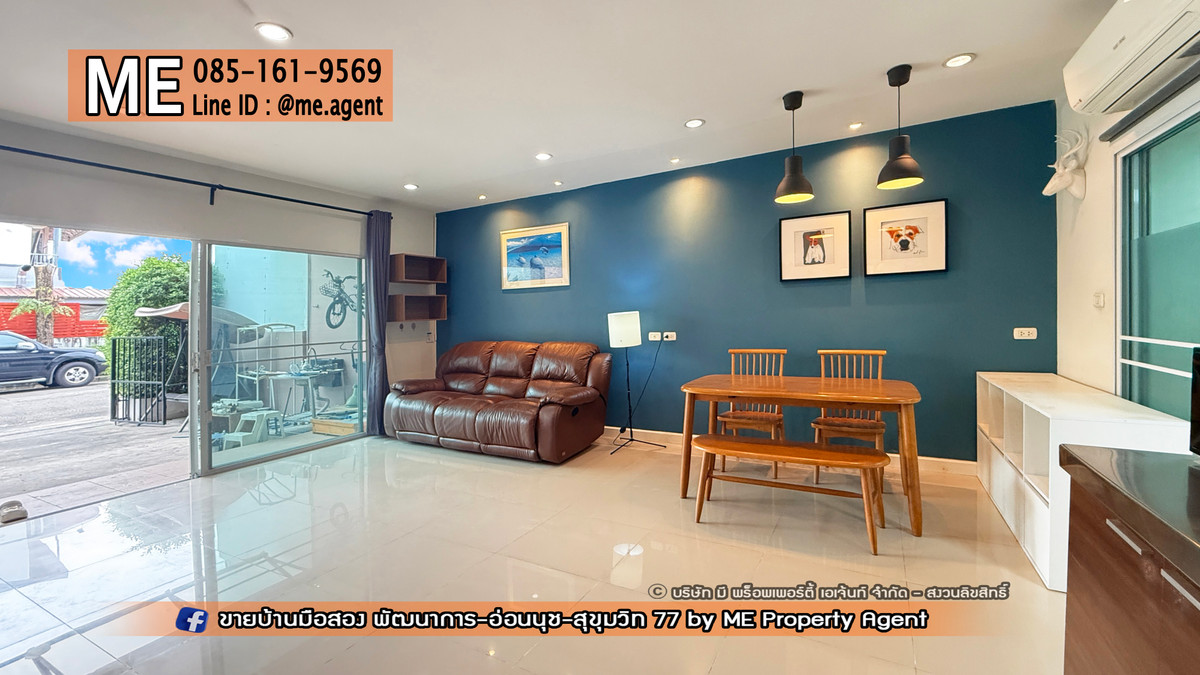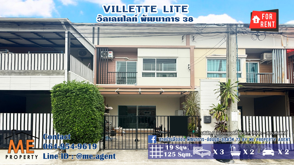 Townhouse for rent, Willet Light Pattanakarn 38, at the beginning of the project, next to the main road, in front of the house, doesnt collide with anyone. Just carry your bag and move in. Near Ekkamai-Thonglor-Sukhumvit, call Contact number (RTG40-19) .(ENG VERSION BELOW) . - Area 19 sq m, usable area 125 sq m - 3 bedrooms, 2 bathrooms, 1 additional kitchen - 2 parking spaces - with furniture You can move in . Rent 27,000 baht / month . If interested, contact us at ME Property Agent Call Contact number K.Mook (TH/ENG/JP)LINE : @me.agent IG : mepropertyagent TIKTOK : meagent YouTube : @meagent5131 Follow and see beautiful houses on the ME page. Inbox FB : Used houses for sale. Phatthanakan-On Nut-Sukhumvit 77 by ME Property Agent https://www.facebook.com/MEpropertyAgent Project amenities – Swimming pool size 15 x 5 meters – Fitness – Clubhouse – Security guard and CCTV 24 hrs. .Nearby places 1. Kasem Bundit University – 1.2 km. 2. Vibharam Hospital – 3.5 km. 3. Thanya Park – 4.0 km. 4. Airport Link Hua Mak – 3.5 km. 5. BTS On Nut – 5.5 km 6. Big C Extra On Nut – 5.0 km 7. Tesco Lotus On Nut – 5.5 km 8. Seacon Square – 7.5 km. 9. Paradise Park – 8.3 km #MEpropertyagent #ONEStopService #Secondhand house #Baan Phatthanakan #Baan On Nut #House ready to move in #Townhouse On Nut #Townhouse Pattanakarn #Single house ready to move in #VilletteLite #Phatthanakan 38 #VilletteLite #North direction #Large single house #Near the BTS #Near the expressway