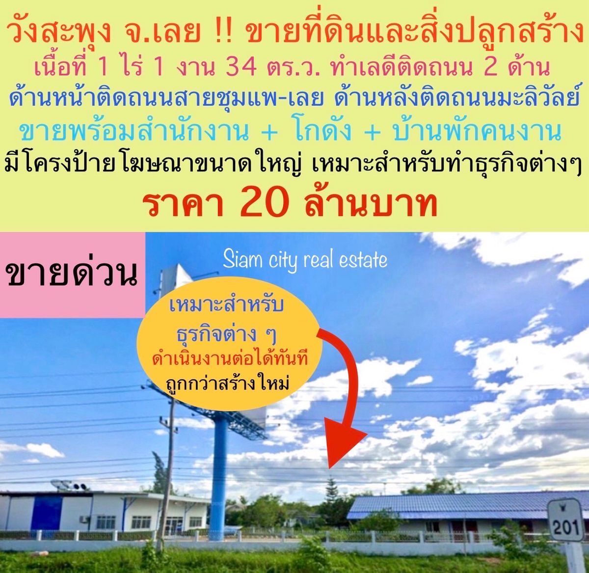 Land for sale with buildings to use as an office and warehouse. and staff housing ⛺️ Ready to continue with business. Cheaper than building a new one 🏠 in a good location, next to the road on 2 sides, the front is next to Chum Phae - Loei Road, the back is next to Maliwan Road, Wang Saphung Subdistrict, Wang Saphung District, Loei Province ❣️ Very good value ❗️ at a price of 20 million baht 🌐 Land size 1 rai 1 ngan 34 sq m. 🌐 One-story concrete building 🌐 Building size 15 meters x 30 meters 🌐 Building area 450 sq m 🌐 Employee housing 🌐 Advertising sign, visible on both sides, width 11.5 meters x 20 meters ➡️ Suitable for 🌞 Office / Company 🌞 Warehouse / Warehouse 🌞 Showroom 🌞 Buy for investment ☎️ If interested, contact. Mr. Suthatip Tel./Line Contact number