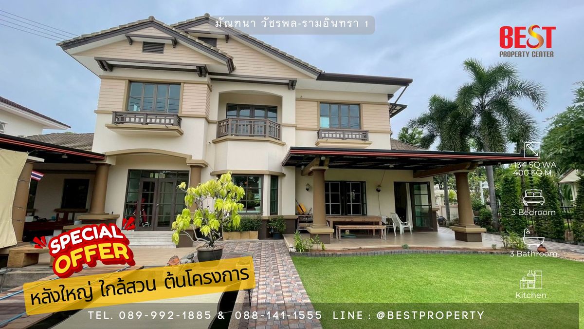 🏡 House for sale, Manthana Watcharapol - Ram Inthra 1 | Big plots, projects near the big house, classic style with warm aura The best location in the project