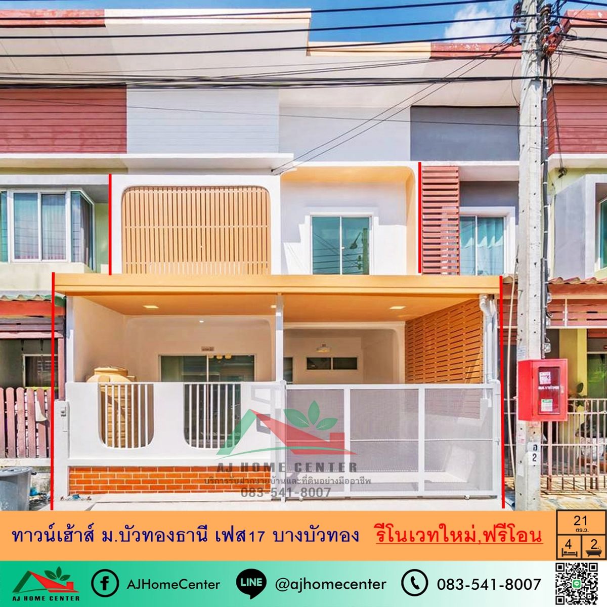 Townhouse for sale 21 sq.m. U. Bua Thong Thani, Phase 17, Bang Bua Thong, new renovated, free transfer fee Townhouse, 2 floors, 21 square meters, living area 120 square meters 4 bedrooms, 2 bathrooms, 1 living room, 1 kitchen, 1 car park *** New renovations in the entire *** - New paint throughout the house - Add a kitchen + kitchen counter - Tiling the garage - Change all new sanitary ware - New granito flooring throughout the house - Free living room set, sofa, dining table with 4 chairs, CCTV, water pump + water tank - This price is free of transfer costs - Free loan arrangement service by professionals . Nearby places > Central Westgate > HomePro, Thai Watsadu > Bang Yai Fresh Market > Sombat Buri Market > Kasemrad Rattanathibet Hospital & gt; Bang Bua Thong Hospital & GT; Phra Mae Sakon Songkhro School . Interested please contact Khun Nat, telephone number Contact number / Contact number / Contact number