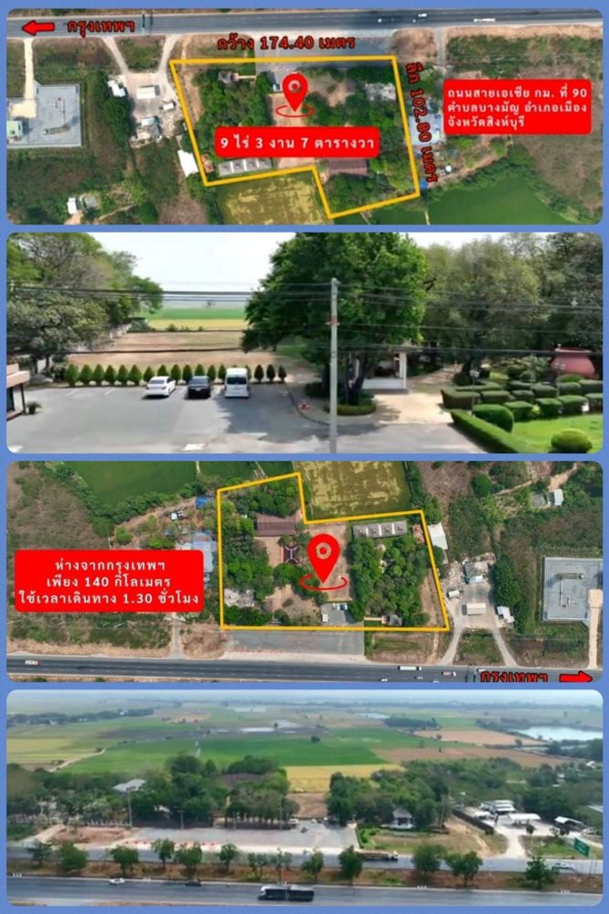 Land for sale with Thai houses, teak wood, 9-3-7 rai, shady atmosphere, good location, Bang Man Subdistrict, Sing Buri Province Location: Asian Road inbound, Bangkok, Bang Man Subdistrict, Mueang Sing