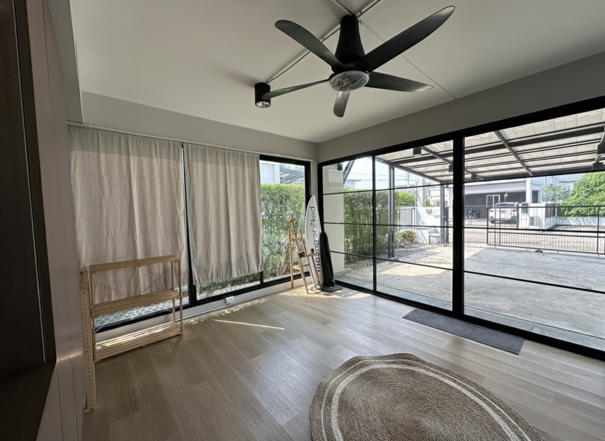 Single House for Rent – Chaiyapruek Ramintra–Chatuchot Modern single house with complete functions in a prime location, just minutes from the expressway. Property Details Land area: 68.5 sq.wah Usable area: 150 sq.m. Layout: • 3 bedrooms • 3 bathrooms • 1 living room • 1 kitchen • 1 multipurpose/extended room • Parking for 2 cars Bright and airy design ideal for modern family living. Project Highlights Large central lake area, total 6 rai Prime location, only 2 minutes (1.5 km) to Chatuchot Expressway Convenient access to major routes: Outer Ring Road (Kanchanaphisek) Chatuchot Road Sukhaphiban 5 Road Sai Mai – Watcharaphon – Theparak – Phahonyothin Parallel Ring Road connecting to Ramintra km.8 Close to Fashion Island Mall and Pink Line BTS (Khubon Station) Rental Conditions Rental Price: 70,000 THB per month Minimum Contract: 1 year Code: CRCPRC 📞 Contact Us Today Call or WhatsApp: Contact number Line ID: ar-catalyzt 出租独栋别墅 – Chaiyapruek Ramintra–Chatuchot 现代风格独栋别墅,功能齐全,黄金地段,距离高速公路仅几分钟车程。 房产信息 • 土地面积:68.5 平方哇 • 使用面积:150 平方米 户型布局: • 3 间卧室 • 3 间浴室 • 1 个客厅 • 1 个厨房 • 1 个多功能/扩展房间 • 可停放 2 辆车 采光充足、通风良好,适合现代家庭居住。 项目亮点 • 中央湖景区面积达 6 莱 • 优越地段,距离 Chatuchot 高速公路仅 2 分钟(1.5 公里) • 交通便利,连接多条主干道: • 外环公路(Kanchanaphisek) • Chatuchot 路 • Sukhaphiban 5 路 • Sai Mai – Watcharaphon – Theparak – Phahonyothin • 环路平行线连接 Ramintra 公里 8 • 临近 Fashion Island 商场和粉红线轻轨(Khubon 站) 租赁条件 • 租金:每月 70,000 泰铢 • 最短租期:1 年 • 房源代码:CRCPRC 📞 联系我们 电话或 WhatsApp: Contact number Line ID:ar-catalyzt