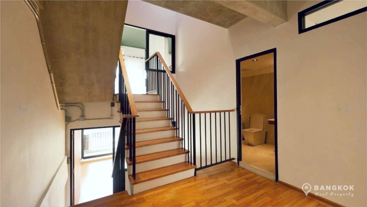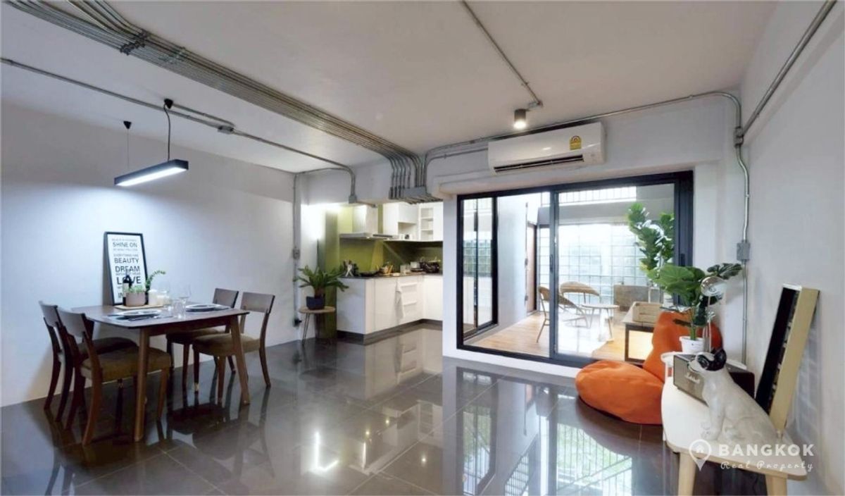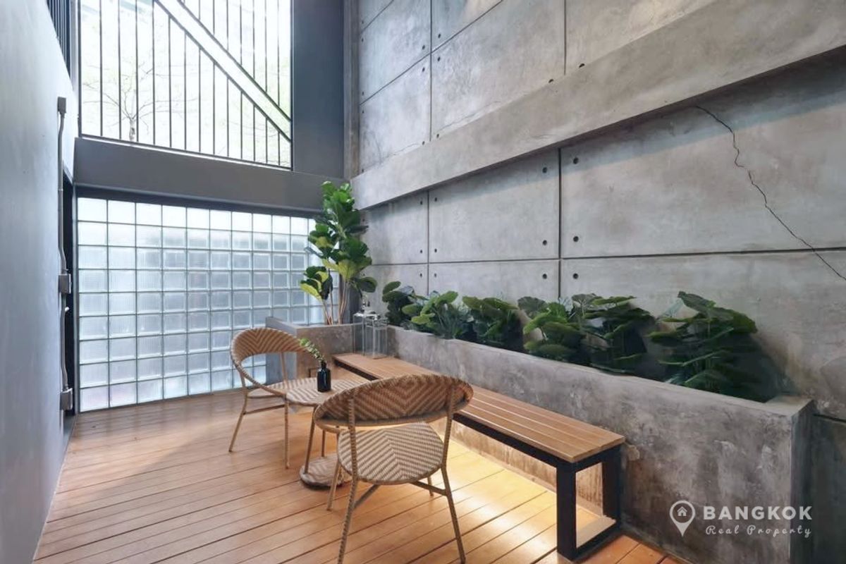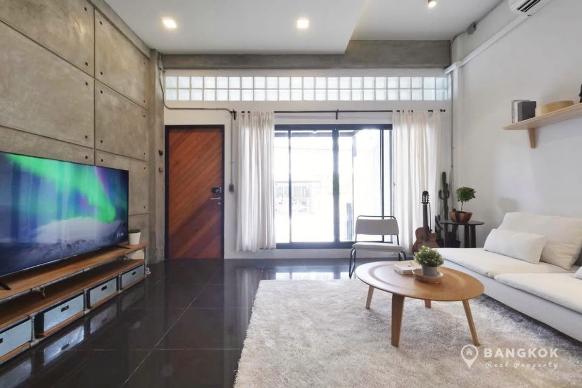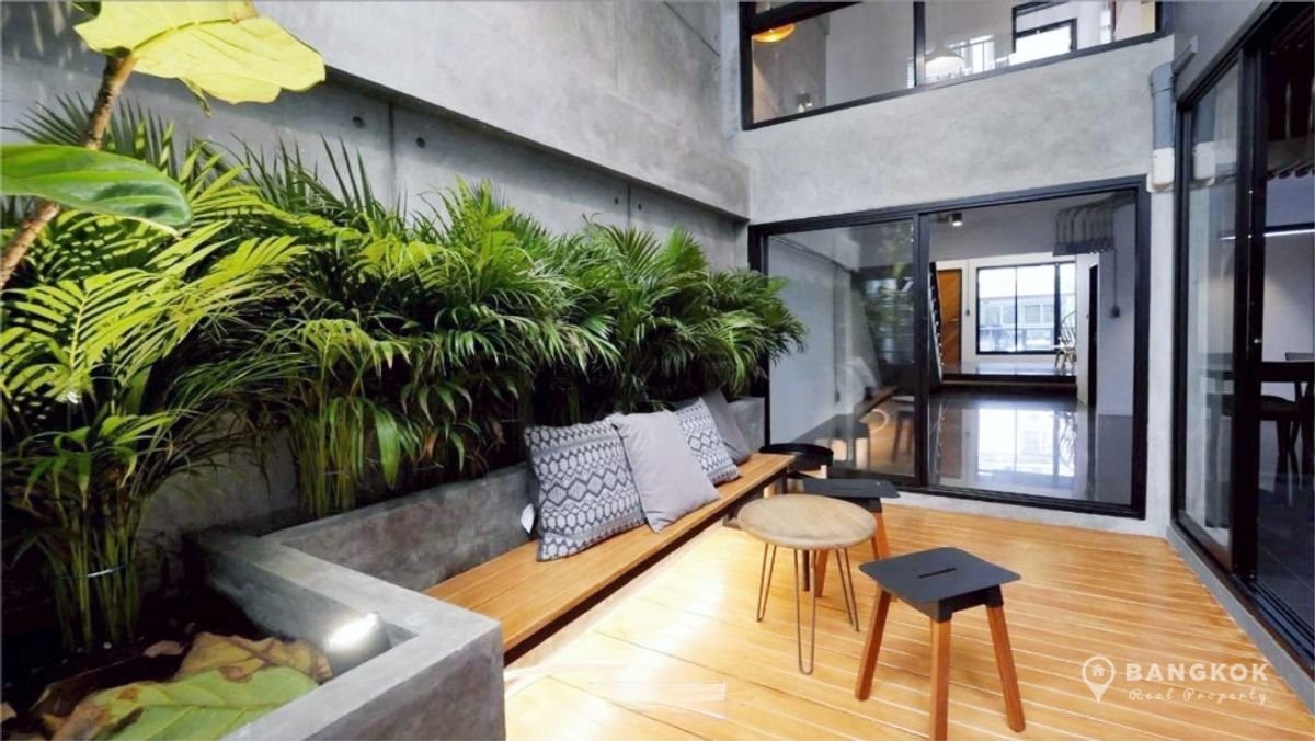 Stylish, Renovated "Loft Style" 5 Bedroom Townhome to rent, located just off Sukhumvit 63. - 5 Large Bedrooms - 5 Modern Bathrooms - Modern Kitchen - Double Height Internal Patio Space - Roof Top Terrace - Modern Kitchen - Fully Furnished - Pet Friendly - Off Street Parking 2 Cars Internal Space: 230 sq.m - 4 Floors Land size: 28 sq.wah / 112 sq.m Transport: 0.5 KM to Wichit Witthaya School (Saen Sap Canal Boat) 2.4 KM to ARL Ramkhamhaeng 3 KM to Thong Lo BTS 4 KM to Ekkamai BTS Rent: 92,000 THB per month Sale: 19.5 Million - Sorry, No Co Agents / ไม่รับโคเอเจนย์ For more details: LINE ID: tombkkproperty https://line.me/ti/p/UcCUcpKdaL Mobile/WhatsApp: Contact number English + Thai