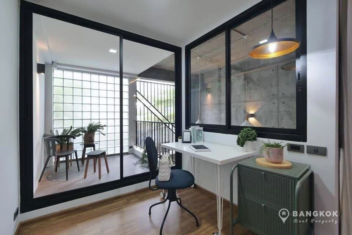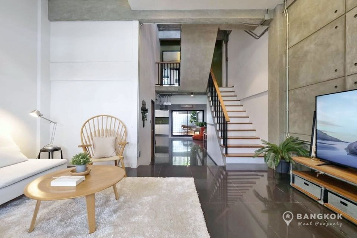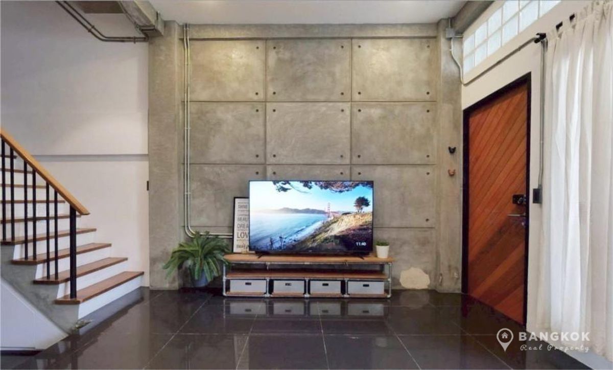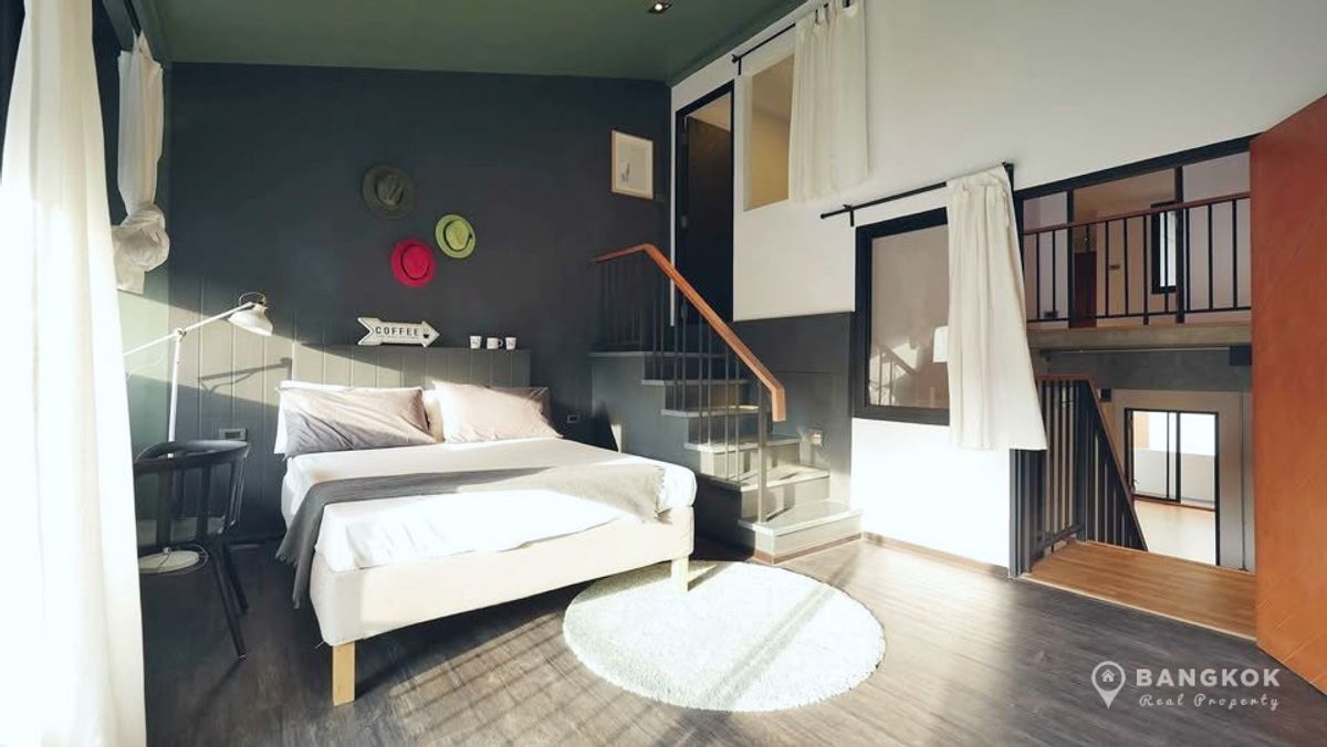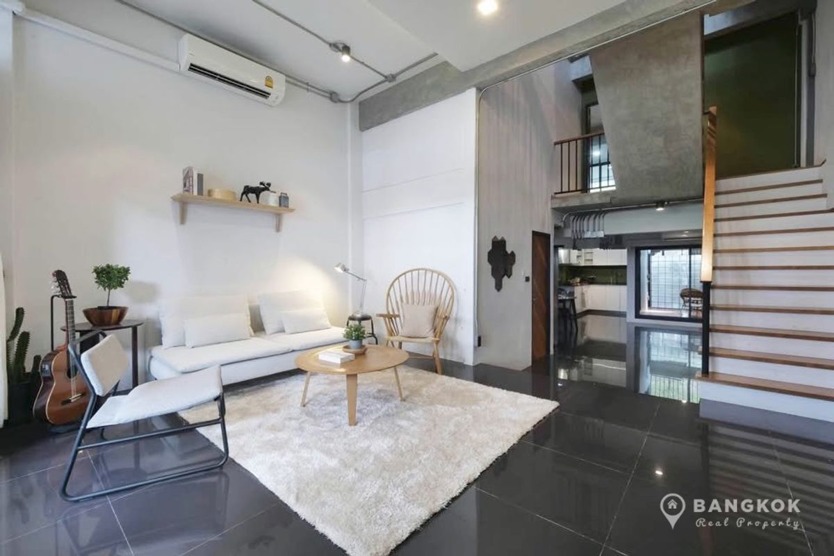 Stylish, Renovated "Loft Style" 5 Bedroom Townhome to rent, located just off Sukhumvit 63. - 5 Large Bedrooms - 5 Modern Bathrooms - Modern Kitchen - Double Height Internal Patio Space - Roof Top Terrace - Modern Kitchen - Fully Furnished - Pet Friendly - Off Street Parking 2 Cars Internal Space: 230 sq.m - 4 Floors Land size: 28 sq.wah / 112 sq.m Transport: 0.5 KM to Wichit Witthaya School (Saen Sap Canal Boat) 2.4 KM to ARL Ramkhamhaeng 3 KM to Thong Lo BTS 4 KM to Ekkamai BTS Rent: 92,000 THB per month Sale: 19.5 Million - Sorry, No Co Agents / ไม่รับโคเอเจนย์ For more details: LINE ID: tombkkproperty https://line.me/ti/p/UcCUcpKdaL Mobile/WhatsApp: Contact number English + Thai