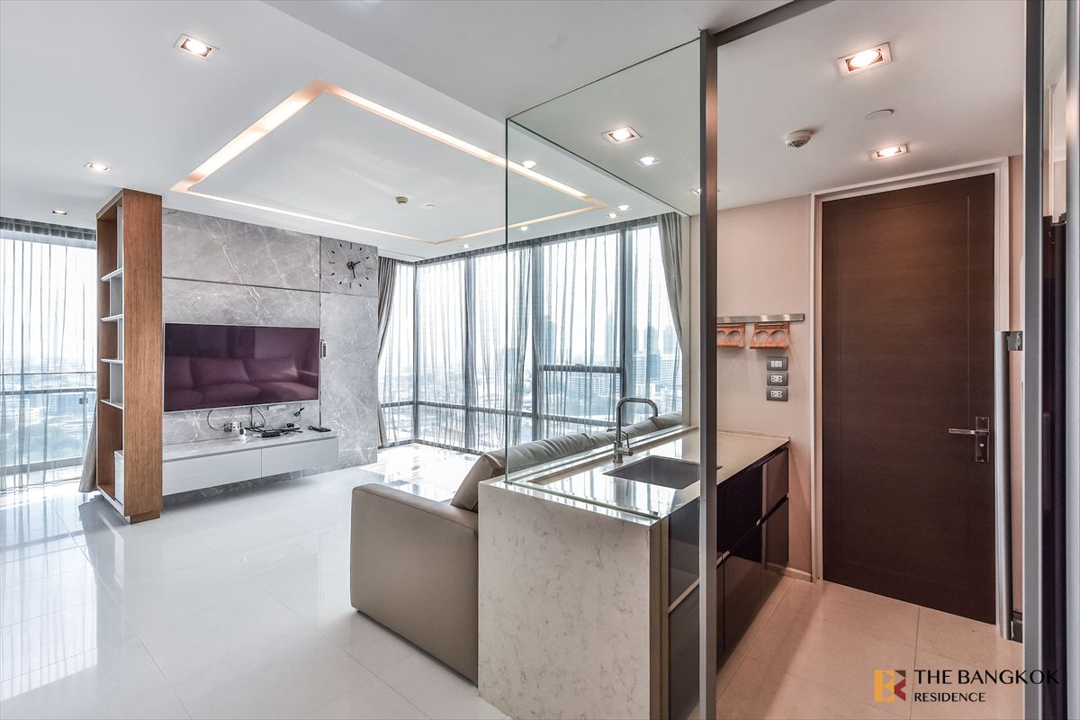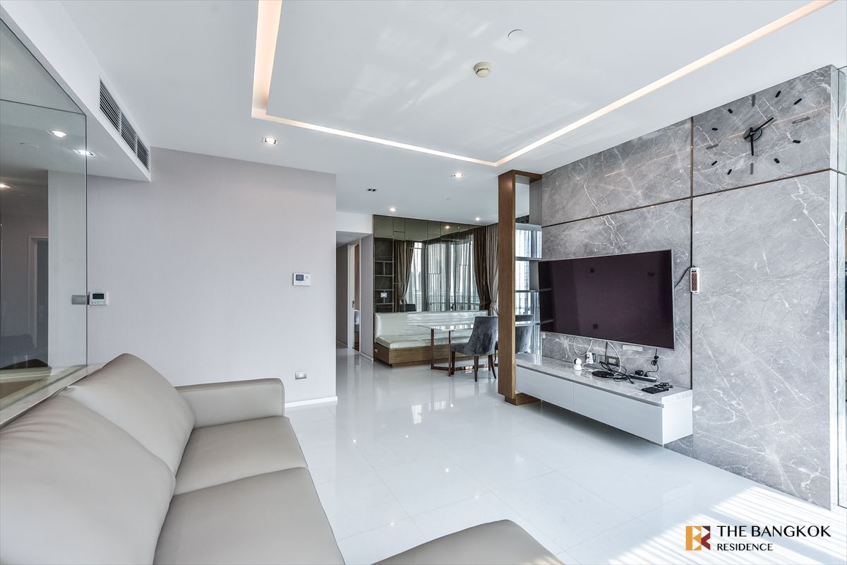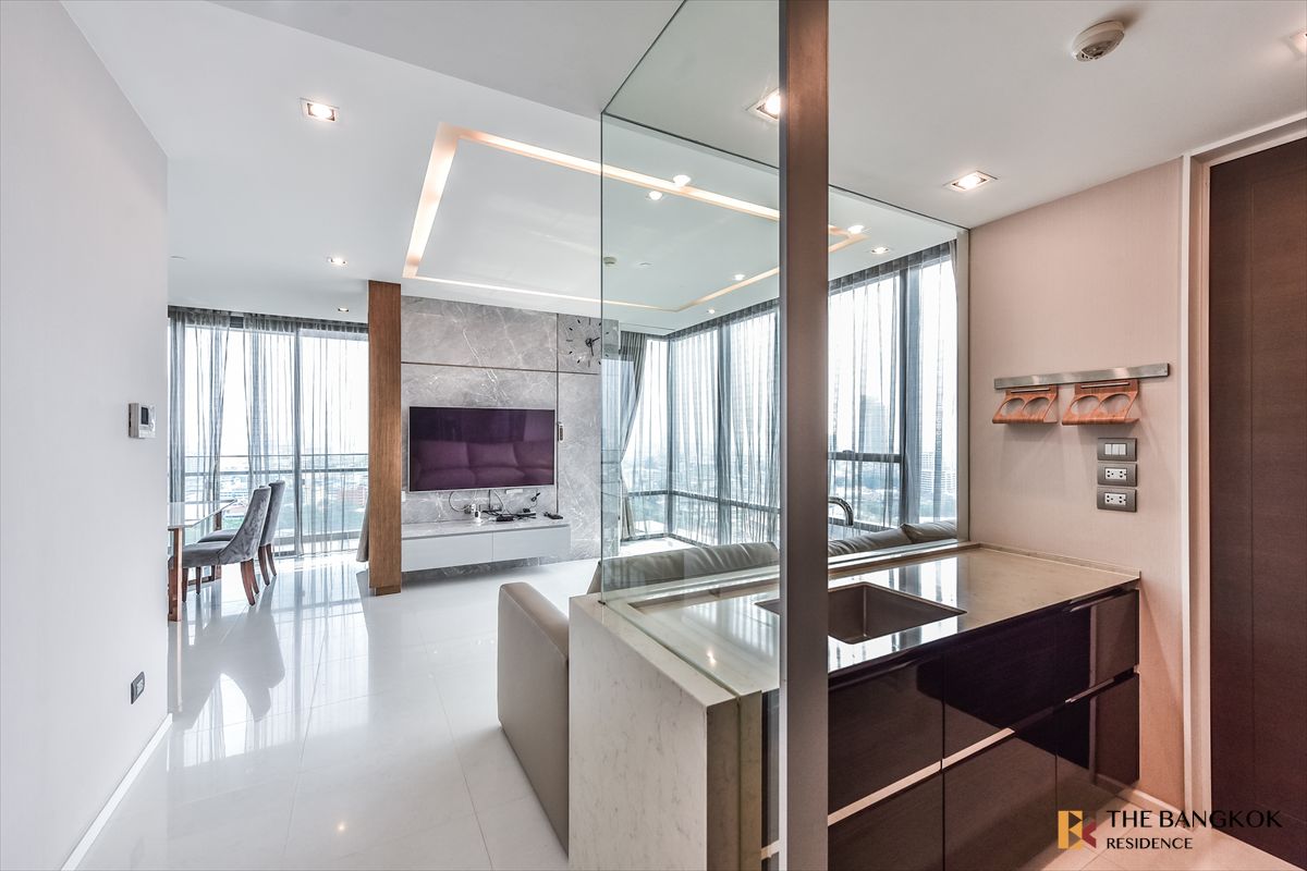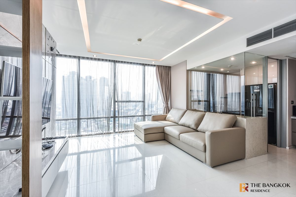 The Bangkok Sathorn for Rent Area 107 sqm. High Floor 2 bedrooms, 3 bathrooms The room is available. Complete furniture Elegant Next to BTS Surasak, only 2 minutes walk Can watch the room at all times