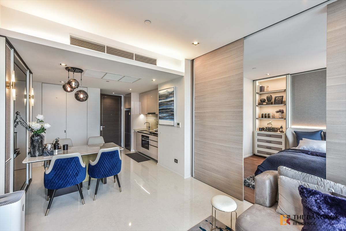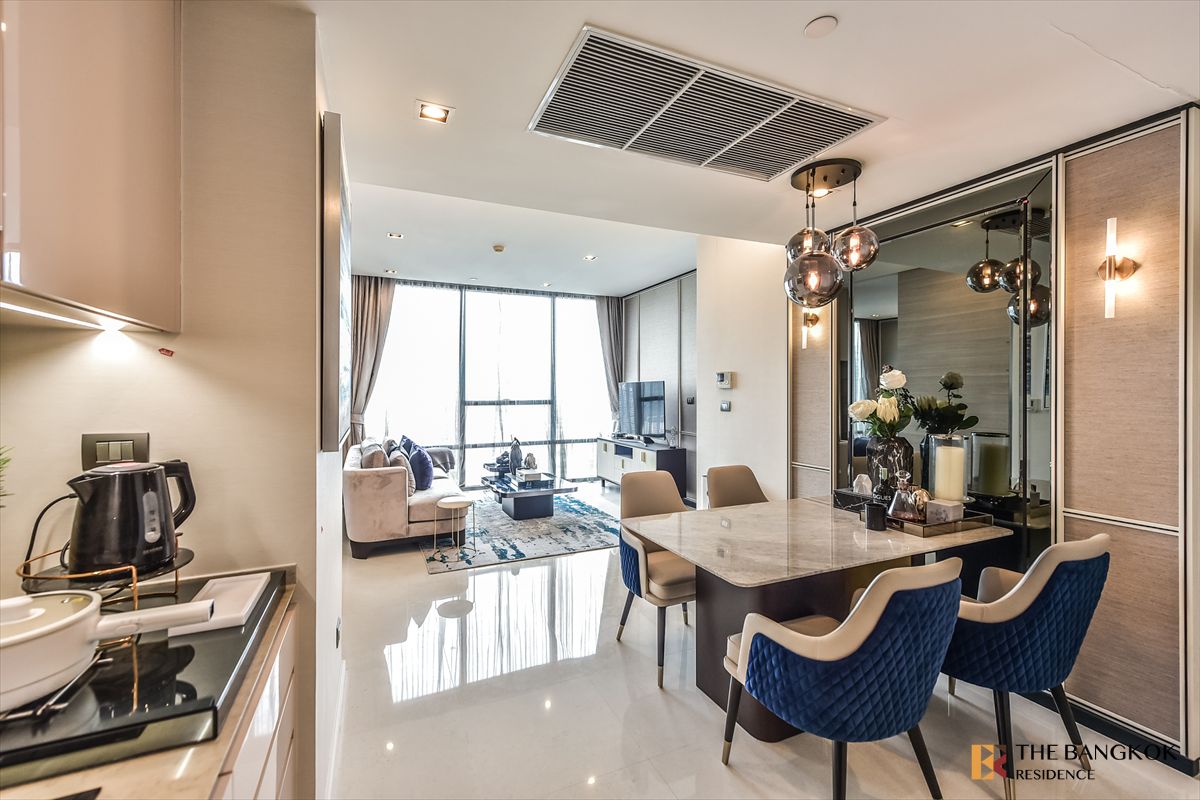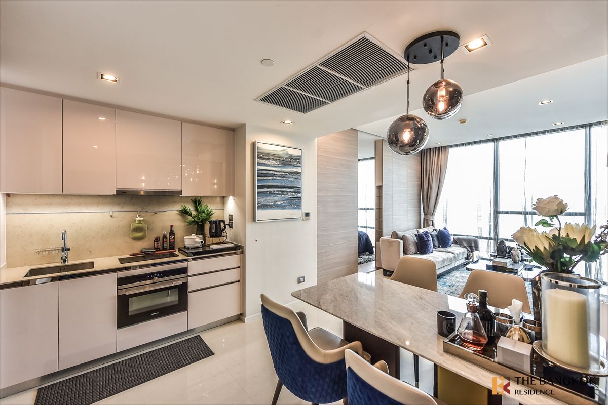The Bangkok Sathorn Area 61.6 sq. M. High Floor 1 bedroom, 1 bathroom Beautiful room, good price, complete with furniture, very elegant, attached to the BTS Surasak, only 2 minutes. Watch the room thr