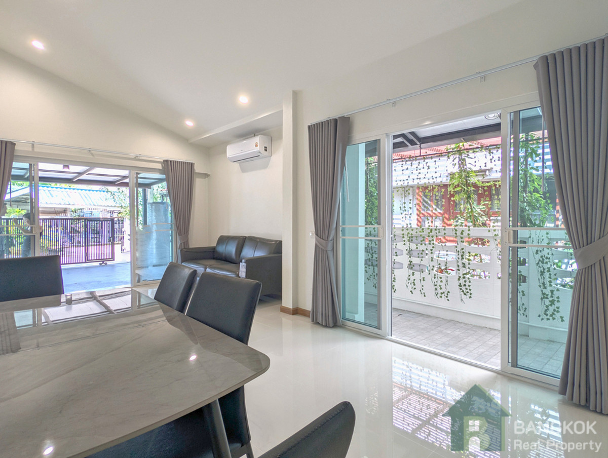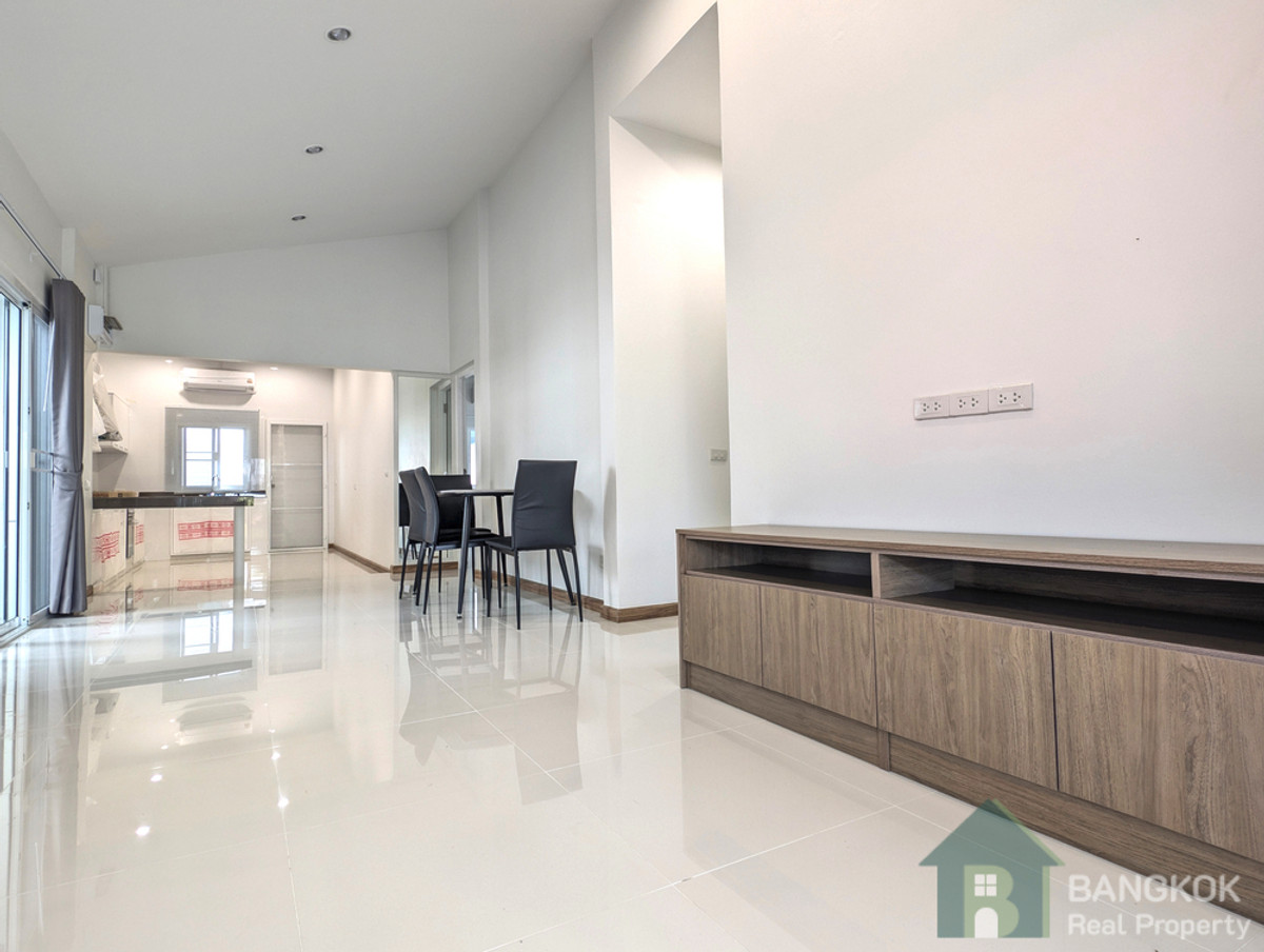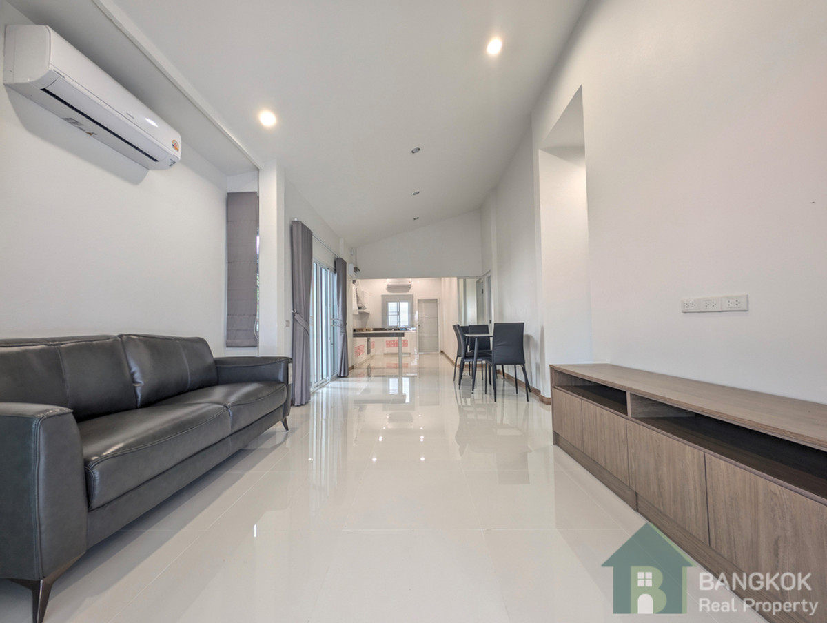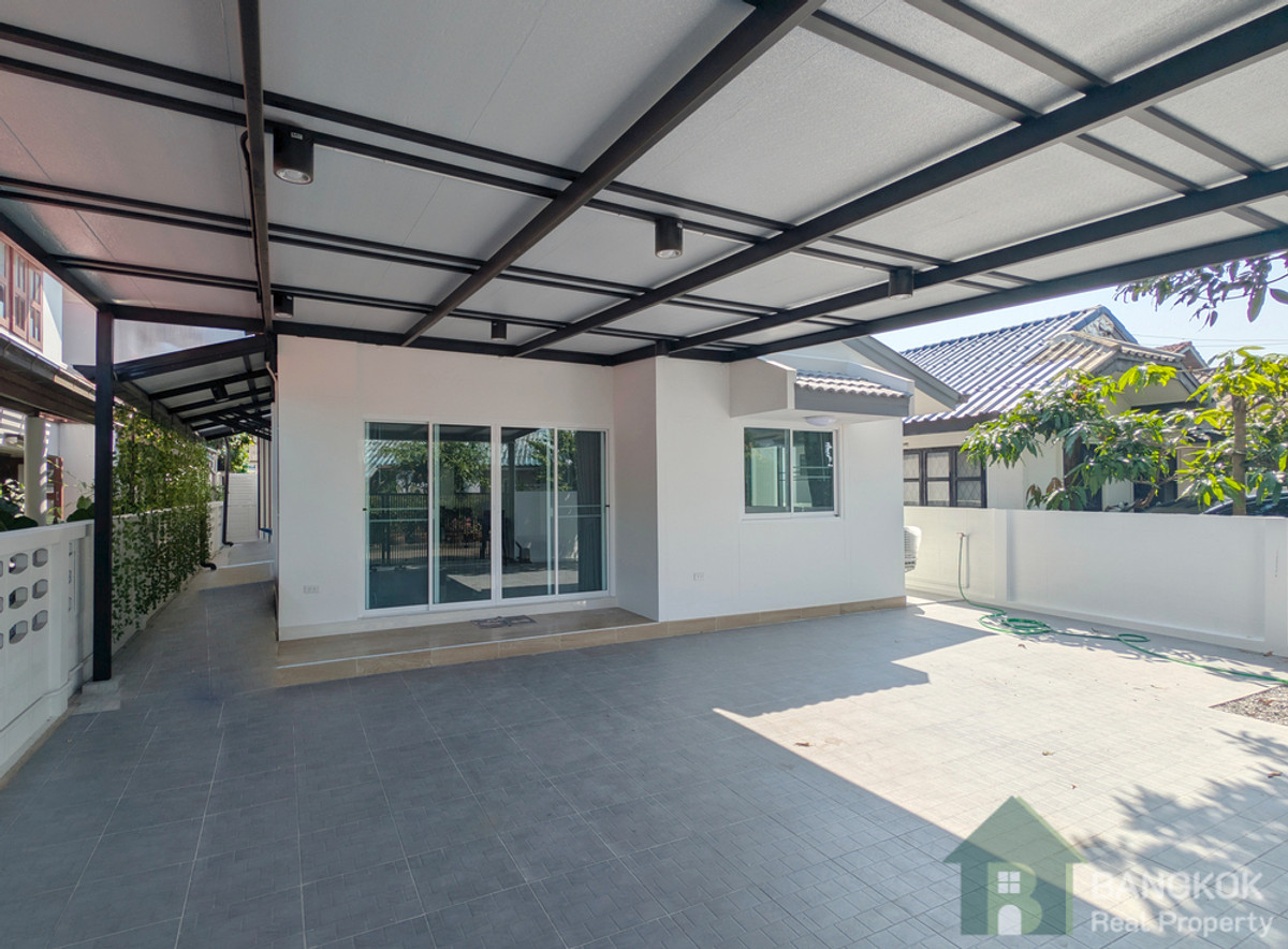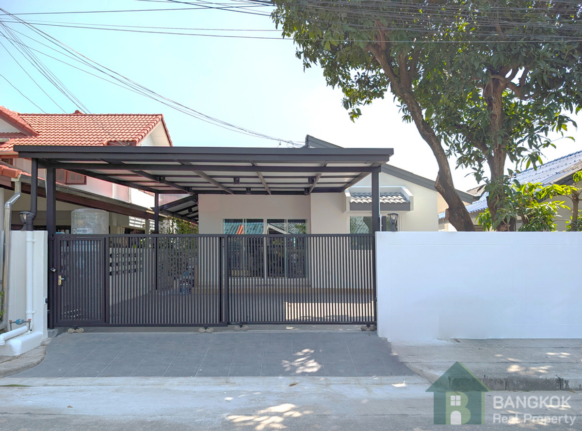 This newly renovated, detached, single storey 3 bedroom house, just completed in late 2025, is available to rent ideally situated within the very popular Sammakorn Village located just off Ramkhamhaeng Road. Located in a quiet residential area of the village near the many lakeside restaurants and other amenities. MRT Yaek Lam Sali (Yellow Line), MRT Ram Inthra Kor Mor 9 (Pink Line) stations and the Outer Ring (Wongwaen) Motorway, all are just a short drive away. This house is set over 1 floor with high ceilings throughout, fully fitted Western kitchen, 3 bedrooms, 2 modern bathrooms with showers, covered terrace, patio garden and cover parking for 2 cars. House is c. 170 sq.m on a plot of 50 Sq.Wah (200 Sq.m) - No Short Term Rentals - Minimum 1 year contract (12 Months or more) - 2 Months Security Deposit + 1 Month Advance Rent - Use of the village facilities (Pool, Gym etc) is not included in the rent. - Sorry, No Co Agents / ไม่รับโคเอเจนย์ For more details: LINE ID: tombkkproperty https://line.me/ti/p/UcCUcpKdaL Mobile/WhatsApp: Contact number English + Thai