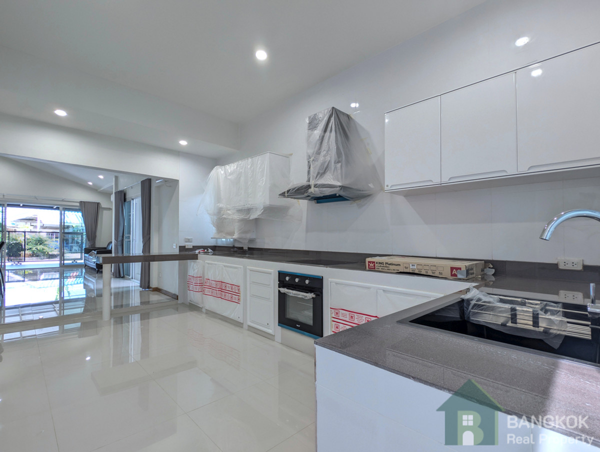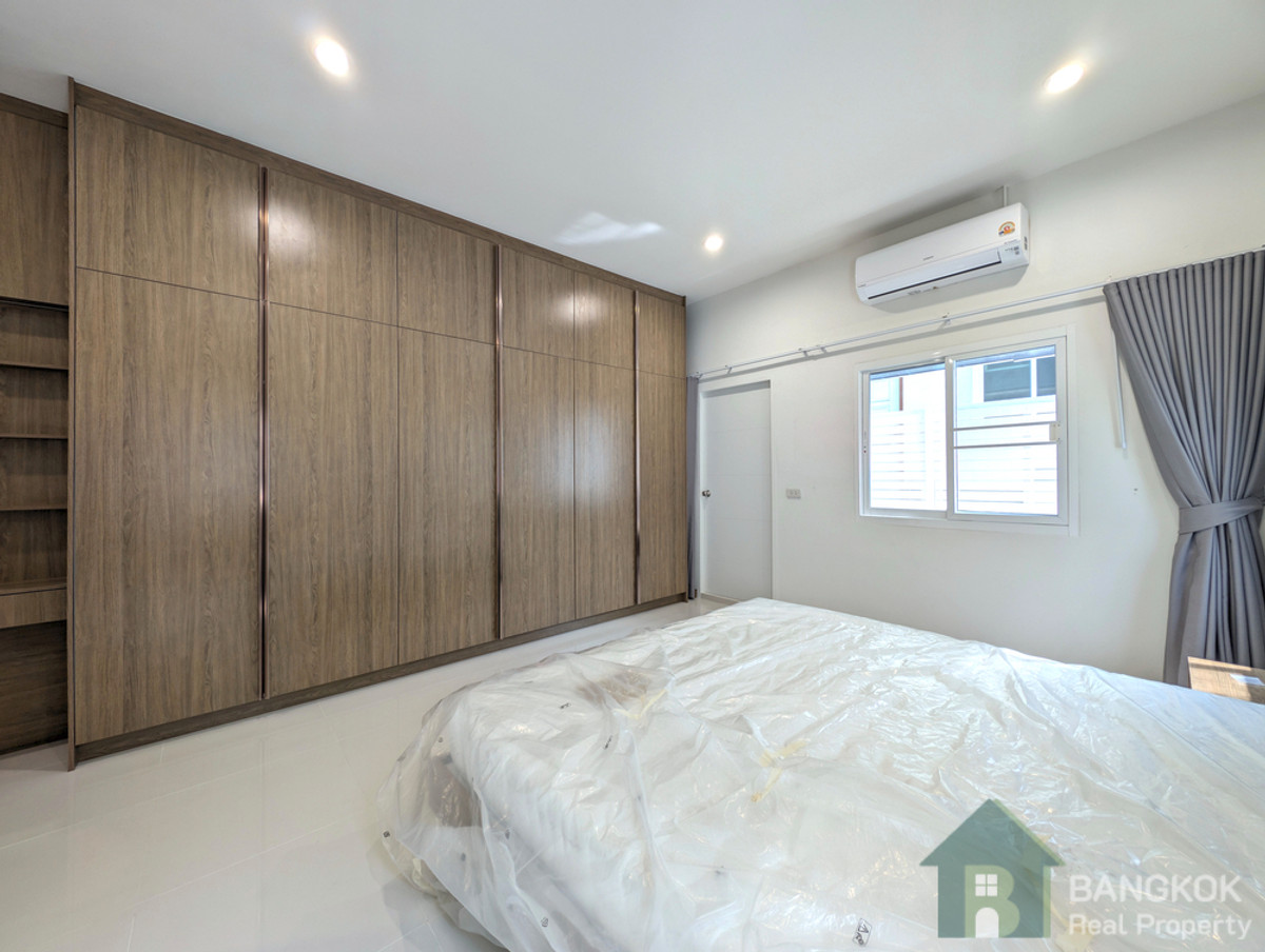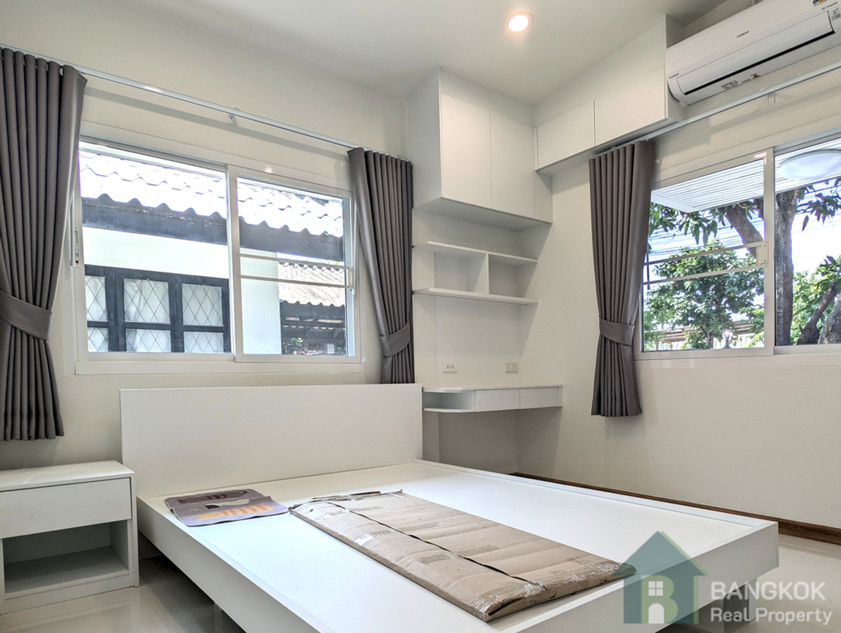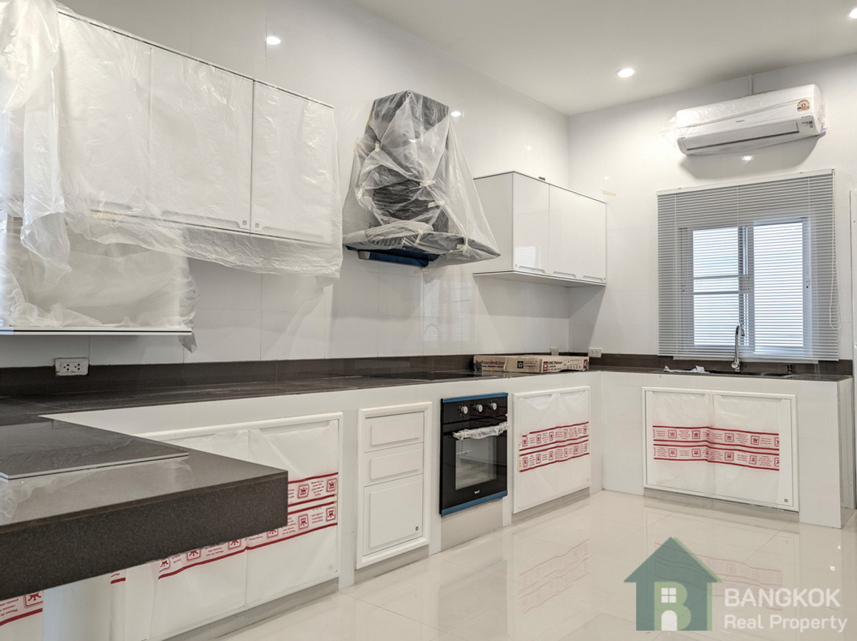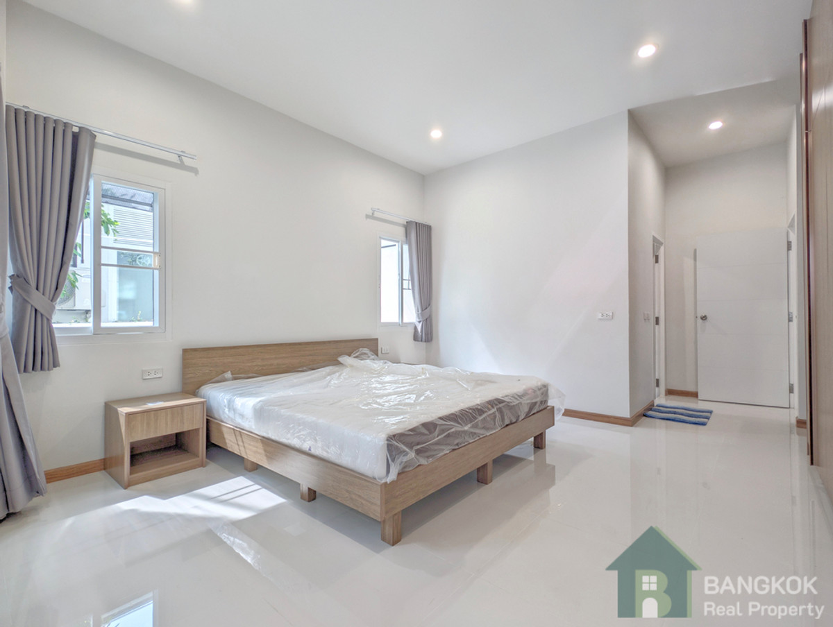 This newly renovated, detached, single storey 3 bedroom house, just completed in late 2025, is available to rent ideally situated within the very popular Sammakorn Village located just off Ramkhamhaeng Road. Located in a quiet residential area of the village near the many lakeside restaurants and other amenities. MRT Yaek Lam Sali (Yellow Line), MRT Ram Inthra Kor Mor 9 (Pink Line) stations and the Outer Ring (Wongwaen) Motorway, all are just a short drive away. This house is set over 1 floor with high ceilings throughout, fully fitted Western kitchen, 3 bedrooms, 2 modern bathrooms with showers, covered terrace, patio garden and cover parking for 2 cars. House is c. 170 sq.m on a plot of 50 Sq.Wah (200 Sq.m) - No Short Term Rentals - Minimum 1 year contract (12 Months or more) - 2 Months Security Deposit + 1 Month Advance Rent - Use of the village facilities (Pool, Gym etc) is not included in the rent. - Sorry, No Co Agents / ไม่รับโคเอเจนย์ For more details: LINE ID: tombkkproperty https://line.me/ti/p/UcCUcpKdaL Mobile/WhatsApp: Contact number English + Thai