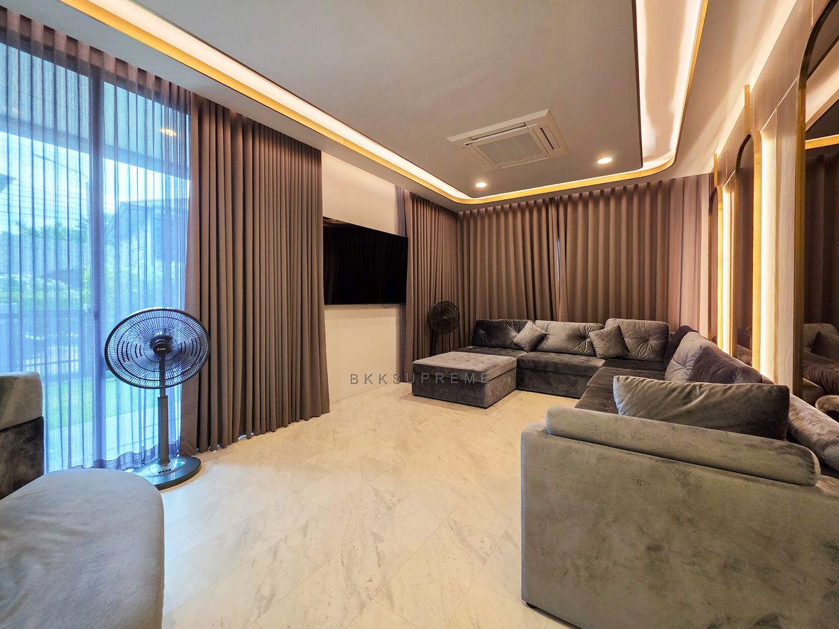 (For rent) ** Large detached house, Setthasiri Krungthep Kreetha 2, fully furnished, ready to move in ** Rental price 260,000 baht/month Details # - Front of house facing south - Area 123 square wah - Usable area 404 square meters - 5 bedrooms - 5 bathrooms - 1 Rest room - 1 kitchen - 1 maids room+ Separate bathroom - 4 parking spaces - swimming pool, fitness, park, CCTV cameras around the village, security guard, key card, 24 hour security system * Compare rental prices or follow other properties. At https://www.facebook.com/bkksupremehome 🍀 Contact for additional information Khun Bow : 0 9 8 - 4 5 6 – 9 9 7 7 LINE : @BKKSUPREME or click https://lin.ee/wjNzNjh