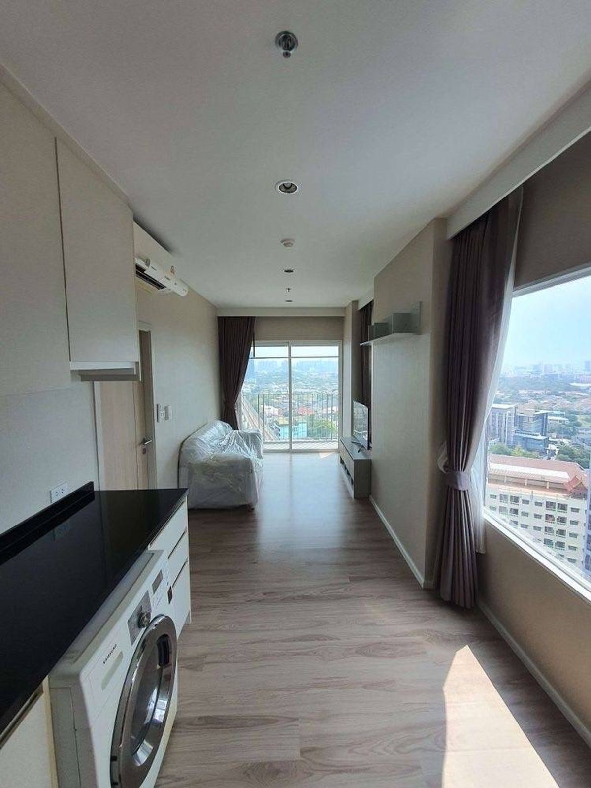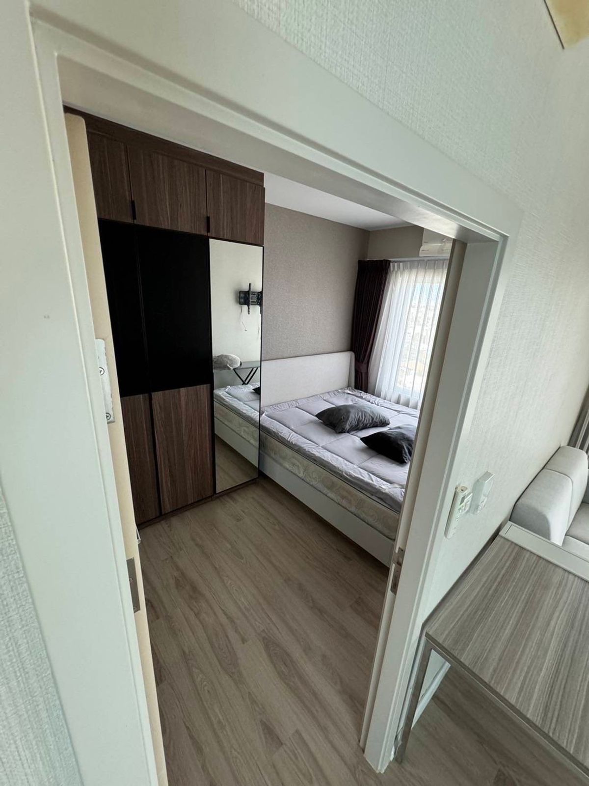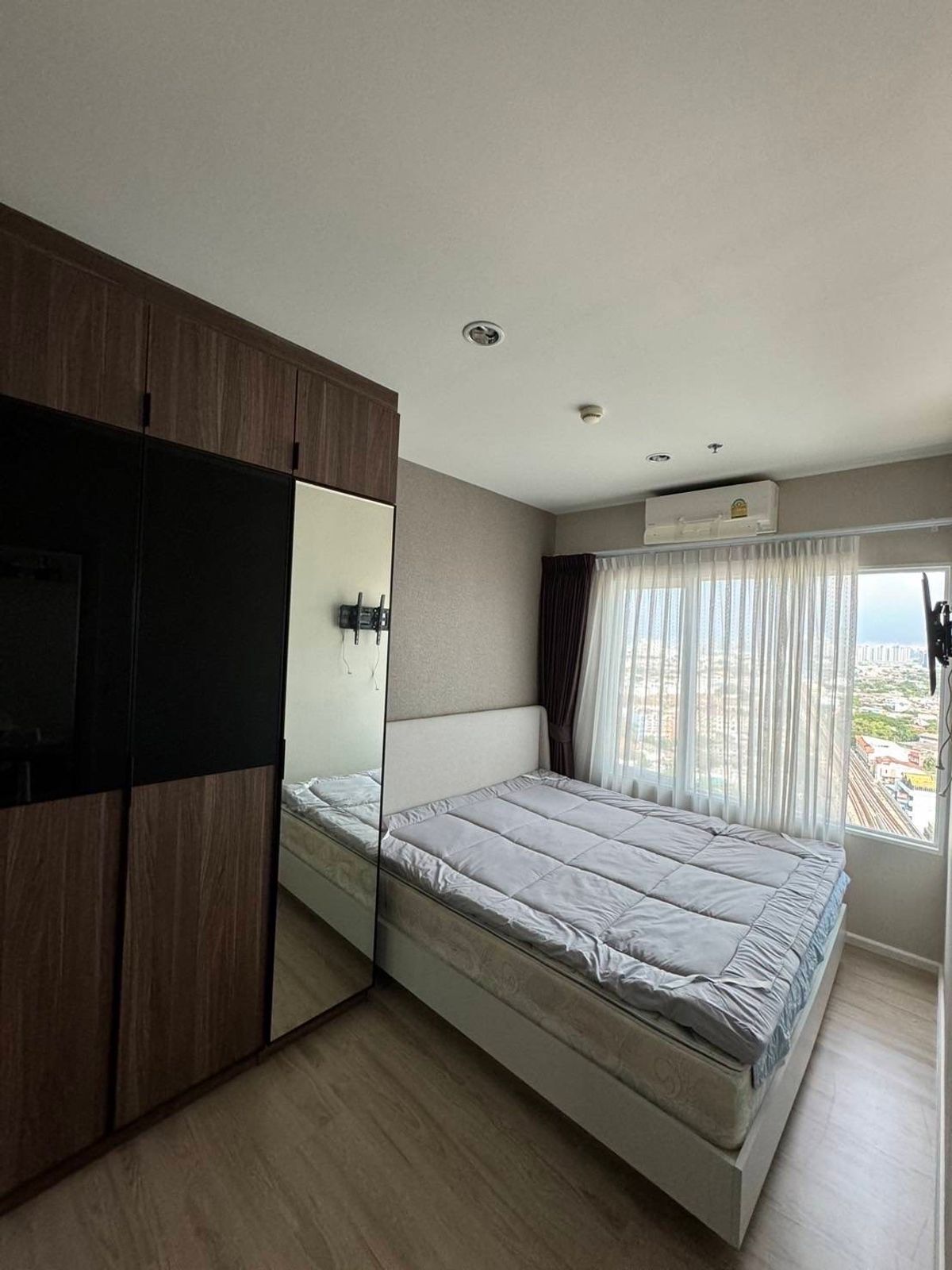 🌟 Condo for rent: Amber Tiwanon 💕 18th floor, glass-fronted room! 35 sq m. 1 bedroom, 1 bathroom 🛏️ 💸 Great price, only 11,000 baht/month 2 months security deposit 1 month advance rent 1-year contract