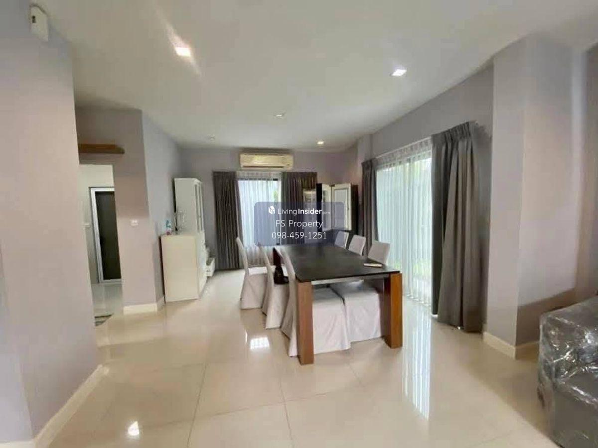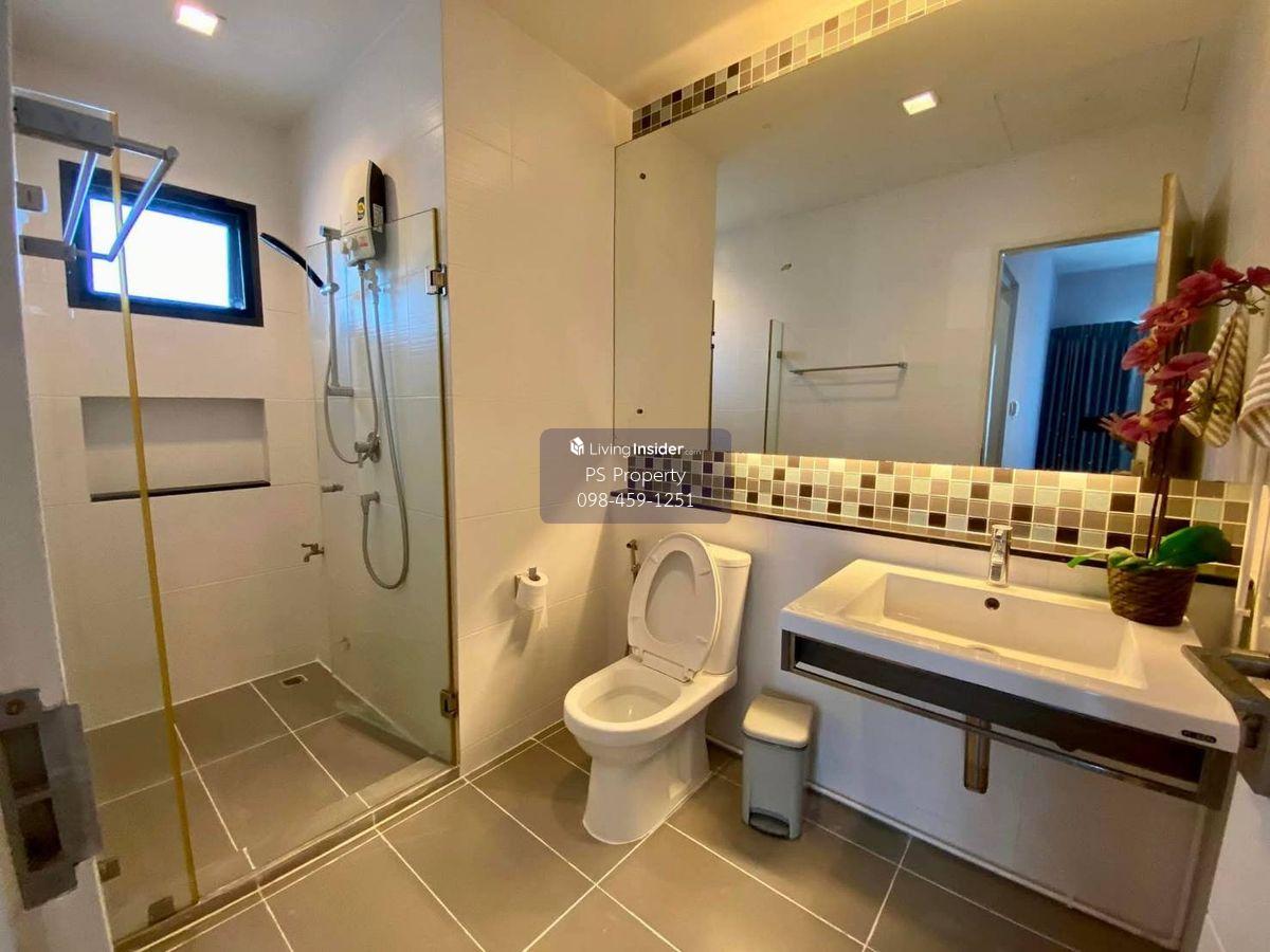 Price: 45,000 baht / month Usable area: 195 sq.m. Area: 25 sq.w. Floor: 2 3 bedrooms / 3 bathrooms / 1 living room / 2 parking spaces Amenities: CCTV, key card Access, fitness center, swimming pool, 24/7 security guard, co-working area, common area. Furniture included: TV, microwave, sofa, refrigerator, bed, air conditioner, water heater, Smoke Dispenser, shelf, TV cabinet, wardrobe, center table. House for rent! convenient transportation, near BTS, near the expressway, fully furnished Ready for viewing. Interested please contact: 📞Call center: Contact number 📱Hotline: Contact number 📲Whatsapp: Contact number 🖱️Line: @psproperty https://lin.ee/d8bpOBs Website: https://www.ps-property.co.th/