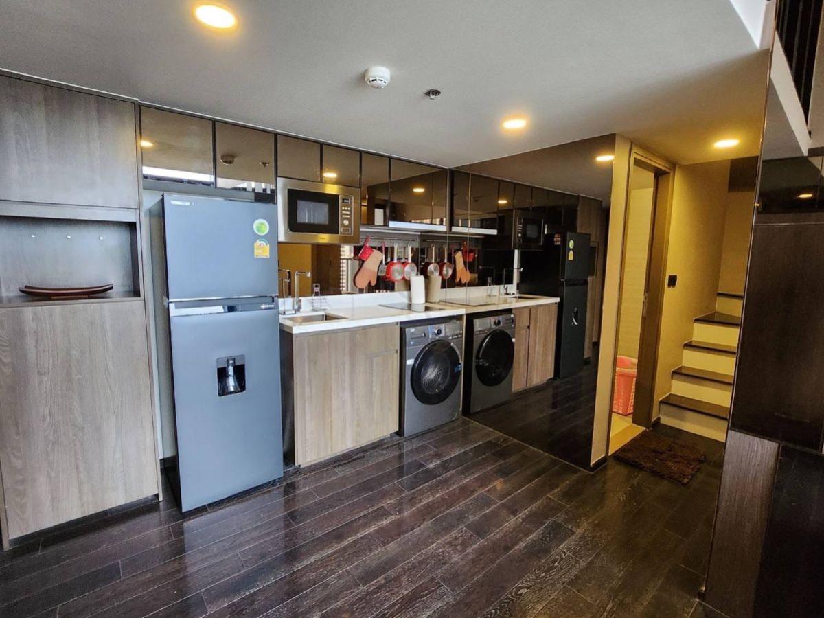 Park Origin Thonglor, a luxury condominium ready to move in. ❤️ Fully furnished, ready to move in. 💎 2 bedrooms, 1 bathroom, 45 sq m, 4.5-meter ceiling height. 🚘 54%* automatic parking and EV charging