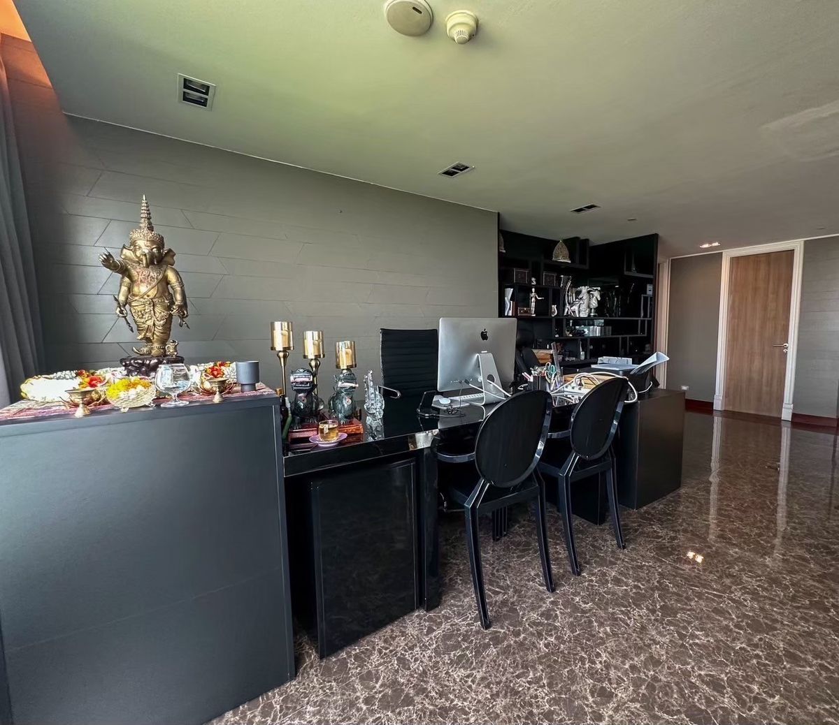 This unit for sale at Watermark Chaopraya River is located on the 9th floor of Tower A, offering an expansive space of 242 sq.m. It features 2 bedrooms, 4 bathrooms, a spacious living area, a separate