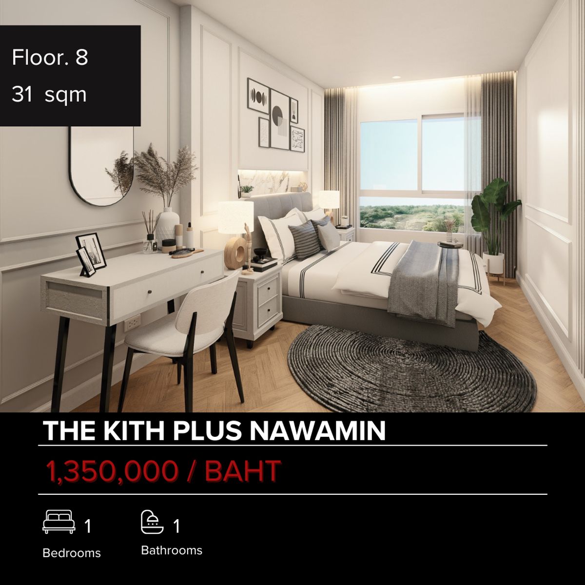 Condo : The Kith Plus Nawamin Size : 31 SQM Floor. 8 Type: 1 bedroom 1 bathroom Sale Price : 1,350,000 Baht Tel. Contact number ( Anda ) WhatsApp Contact number (Anda) Line @285gshuc #TKPN01