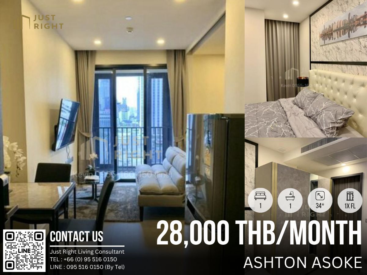 Room available to view and move in 30.10.2025 For rent Ashton Asoke, good price, 1 bedroom, 1 bathroom, 34* sq m., beautifully decorated room, fully furnished, complete electrical appliances. Price reduced from 35,000 to only 28,000/month, 1 year contract only. *Chinese Below* -------------------------------------------------- Type : 1 bedroom, 1 bathroom Size : 34* square meters Floor : 1x Furniture and electrical appliances : Fully Provided, Ready to move-in Rental price : 28,000 baht per month *1 month in advance, 2 months deposit* *Minimum contract period 1 year* -------------------------------------------------- For viewing appointment or further more information please contact Tel : Contact number Line : Contact number WhatsApp : Contact number WeChat ID : k Contact number Website : www.justrightlc.com ** If you looking for renting or purchasing condo for in a nearby location, Please feel free to contact us for more information or consultation ** ** If you prefer to rent out or sell out your condo, Please feel free to contact us or consultation ** -------------------------------------------------- 户型 : 1 间卧室,1 间浴室 面积:34* 平方米 楼层:1x 家具电器:全包,可以马上入住 租金:每月 28,000 泰铢 入住前付款:1 租+ 2 押金 最短合同期1年 -------------------------------------------------- 如果您有兴趣需要进一步的资料,约看房,请您立即联络,我们有中文服务销售 电话: Contact number 线路: Contact number 瓦次艾普 : Contact number 微信号:k Contact number(扫二维码) 网站:www.justrightlc.com ** 如果您在寻找附近公寓出租或购买,请您联系我们获取更多信息或咨询 ** ** 如果您有房源需要出租/出售 请您联系我们获取更多信息或咨询 **