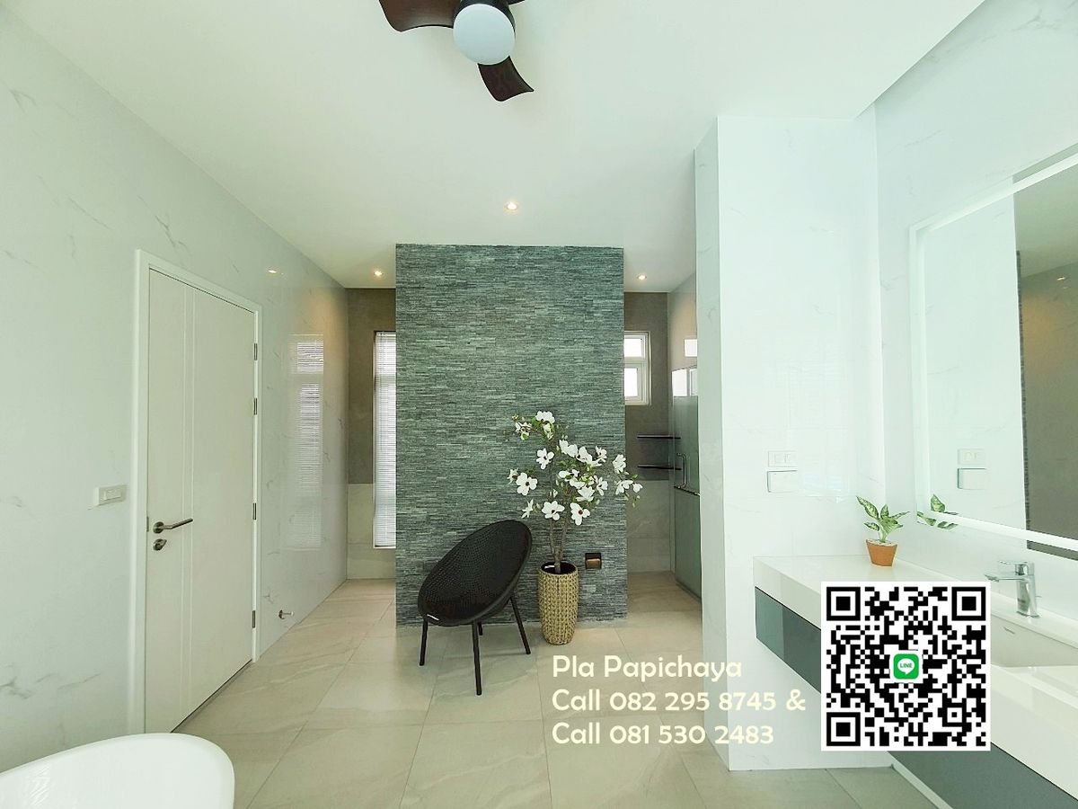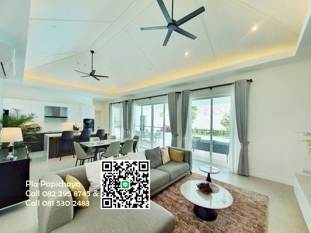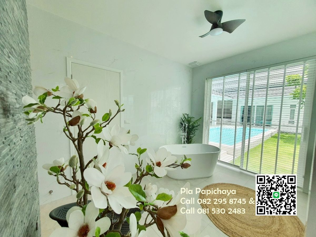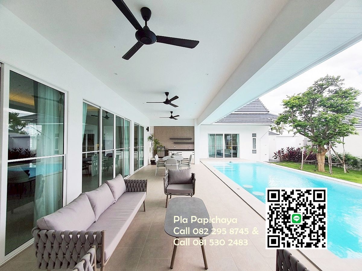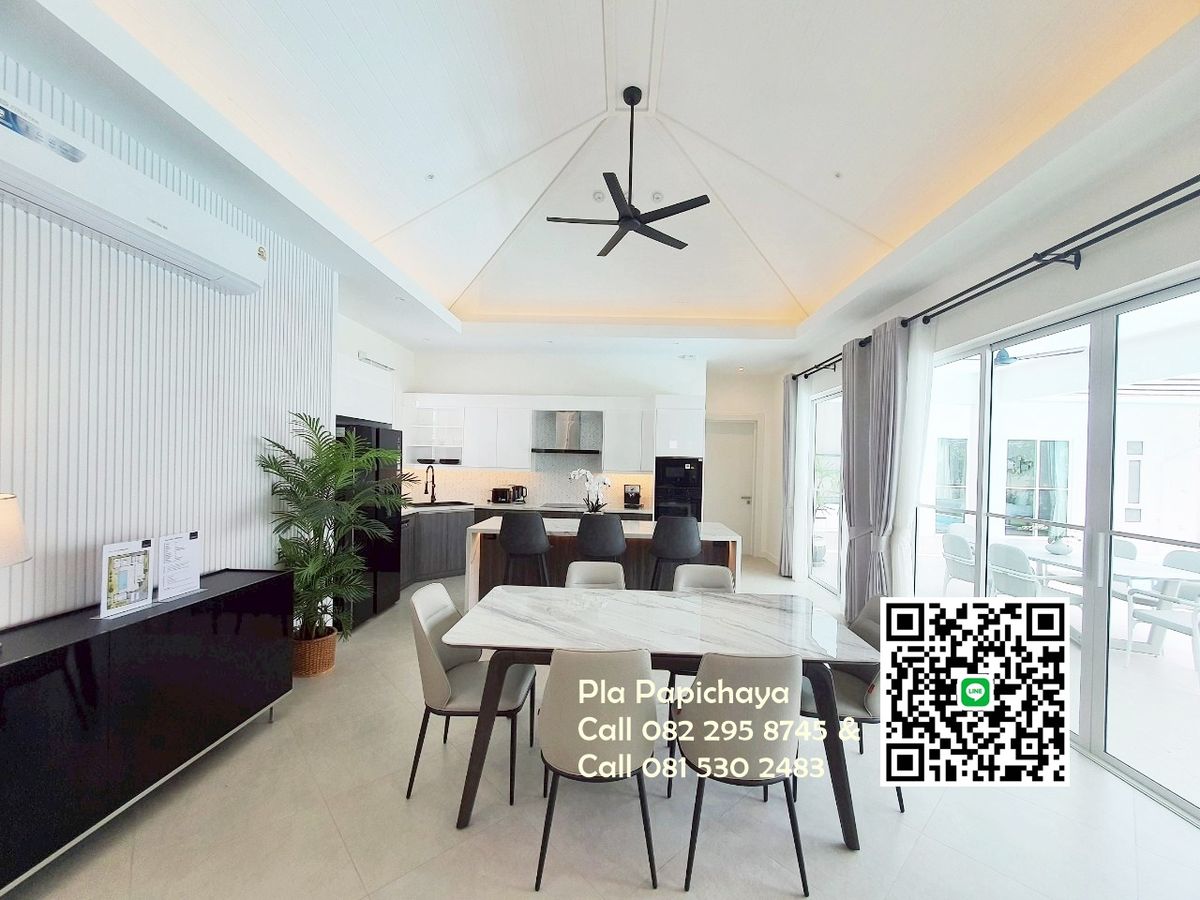 House with private pool Huahin Sell price 11,454,500 baht 3 bedrooms 3.5 bathrooms Land area 150 sq.wah ( 600 sq.m) Living area 241 sq.m Main house come with 2 bedrooms 2.5 bathrooms, washing room, full equipped kitchen and living room. Small house is with 1 bedroom 1 bathroom and BBQ area at front of house. These two houses are connected to each others by swimming pool, garden and large terrace. Car park two cars. Build in furniture, Solar panel 10 KW and EV charger 7kW/32A Transfer fee 50/50. Common fee is 5 baht per sq.m/month. Community facilities : security , garbage collection, public garden, Gym (upon complete) There are 33 houses at this community. It is 25 minutes between house and HuaHin, near SamPanNam Floating market and 30 minutes to the beach. For more detail & visit : Pla Papichaya Call & whatsapp Contact number Call Contact number Email : Contact email