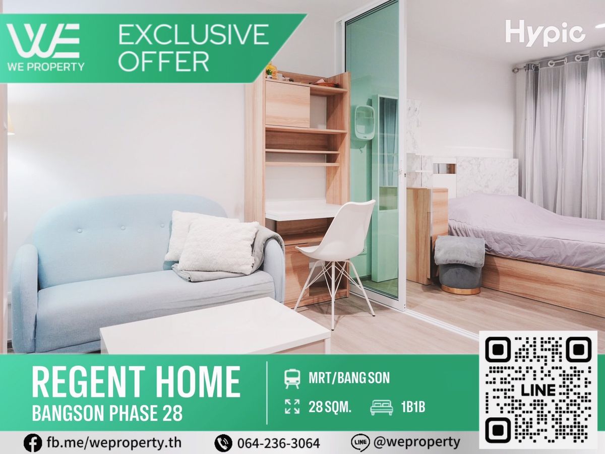 Property code (C3-JOB09) Regent Home Bang Son 2 Phase 28 1 bedroom 1 bathroom size 28 sq m. 10th floor Building B North direction, not hot. Beautifully decorated room, never rented out Fully furnished + electrical appliances Good price!!✨✨ Selling for only 1,590,000 baht only!! ✅There are a variety of rooms to choose from ✅Maintain the benefits of customers ✅Take care of loan applications, get loans through 100% ✅Complete care of every step ✅Renovate and decorate If interested, contact Mobile : Contact number ID Line : @weproperty01 Link Line : https://lin.ee/E32mM6a 📍Group for investors buying condos for rent, high yield. https://line.me/ti/g2/Z6wVg0AO6_ve6FGBdQ7nuf_QvyXJ-yUKVUciHQ?utm_source=invitation&utm_medium=link_copy&utm_campaign=default