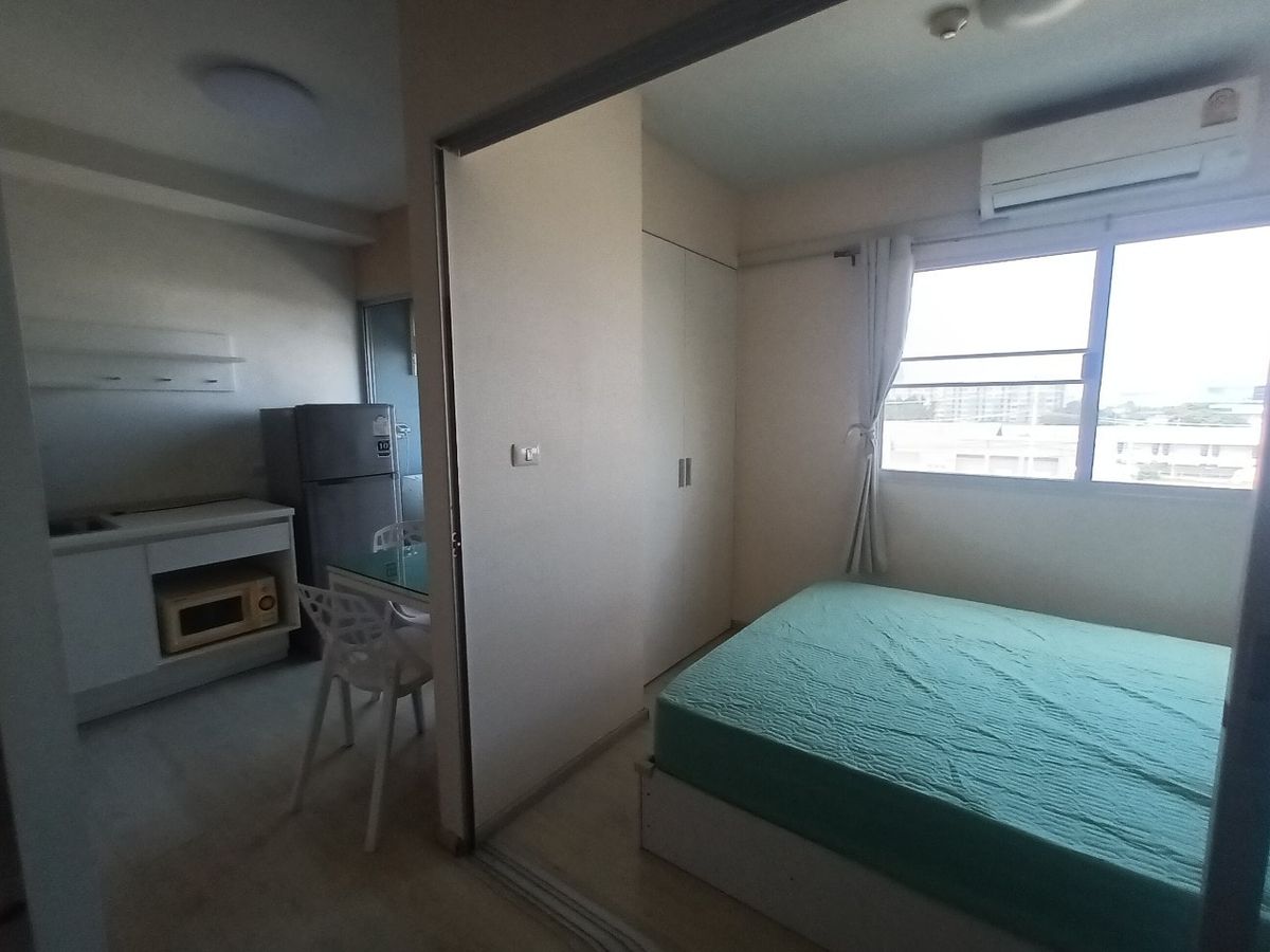 Plum Condo Park Rangsit for rent, near Bangkok University ***Price: 8,000 baht/month (rent includes common area fees)*** Interested? Contact: Tel: Contact number (Miki) Line ID: @miki_proagent (add me too) https://lin.ee/VeUW4bB WhatsApp: Contact number Email: Contact email FR00359 * Building B, 5th floor * Area: 23 square meters * Unit type: 1 bedroom, 1 bathroom * Furnishings: Bed, mattress, wardrobe, dressing table, coffee table, and other items as shown in the photos * Appliances: TV, refrigerator, air conditioner, water heater, washing machine, microwave Facilities: Two 20 x 6 m chlorinated swimming pools Fitness center Badminton court Reading room Yoga room Game room Garden with seating 24-hour security and CCTV Nearby landmarks: Bangkok University, Rangsit Campus: 750 meters Thammasat University, Rangsit Campus: 4.0 km Boonthavorn: 450 meters Talad Thai: 5.7 km