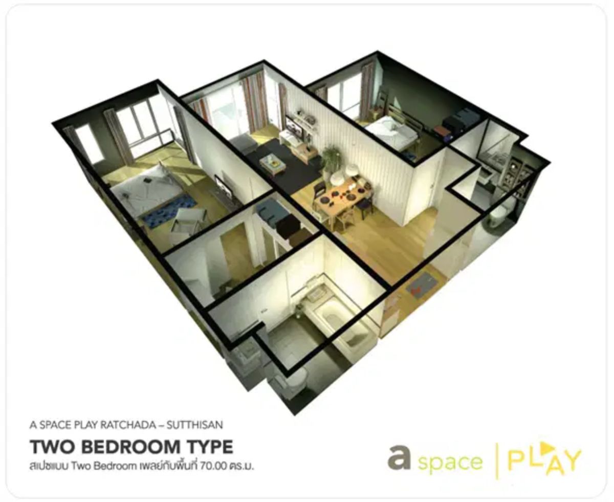 CJK07 📍 A Space Play Ratchada - Sutthisarn ➡️ 1 bedroom, 1 bathroom, 1st floor, Building B ➡️ Room size 42 sq m. Selling for 2,390,000 baht 🔥🔥 Contact us ☎️Tel : Contact number 📱Line ID : @area66agent