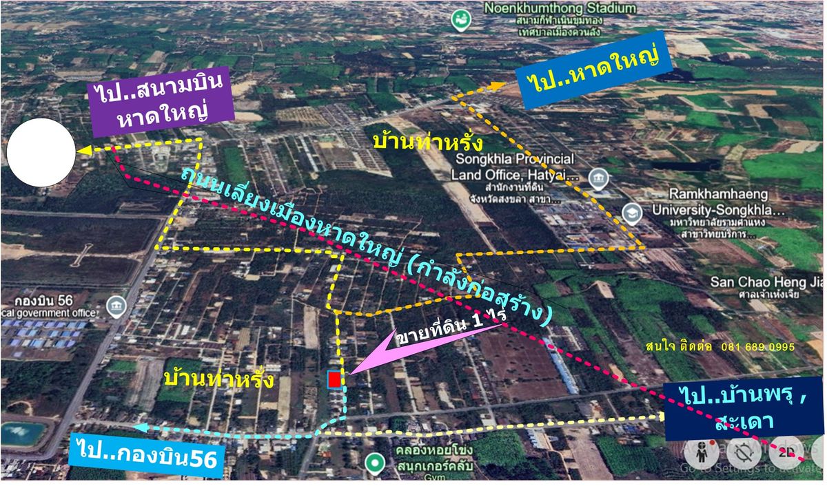Vacant land, area 1 rai -land next to Soi Tha Rang 3, which is a paved road -land It is rectangular - the land has been filled in. and is level with the road Convenient travel - can enter and exit Ban Phru Road - Wing 56 Nearby places - 5.3 km from Hat Yai Airport, only 10 minutes - 2.3 km. from Ramkhamhaeng University, Hat Yai Campus, only 5 minutes - 2.7 km. from Hat Yai Land Office, only 6 minutes - Only 1.5 km. from the front of Wing 56, 3 minutes - 6.8 from Khlong Hoi Khong Hospital Km. or 11 minutes - away from Khlong Hoi Khong District Office. 6.9 km. or 12 minutes -away from school Hat Yai Ratchaprachasan 4.5 km. or 8 minutes - 17.3 km. or 30 minutes from Hat Yai city suitable for building a house If interested, contact Khun M Contact number M Property, accepting services for buying and selling houses, land. and real estate