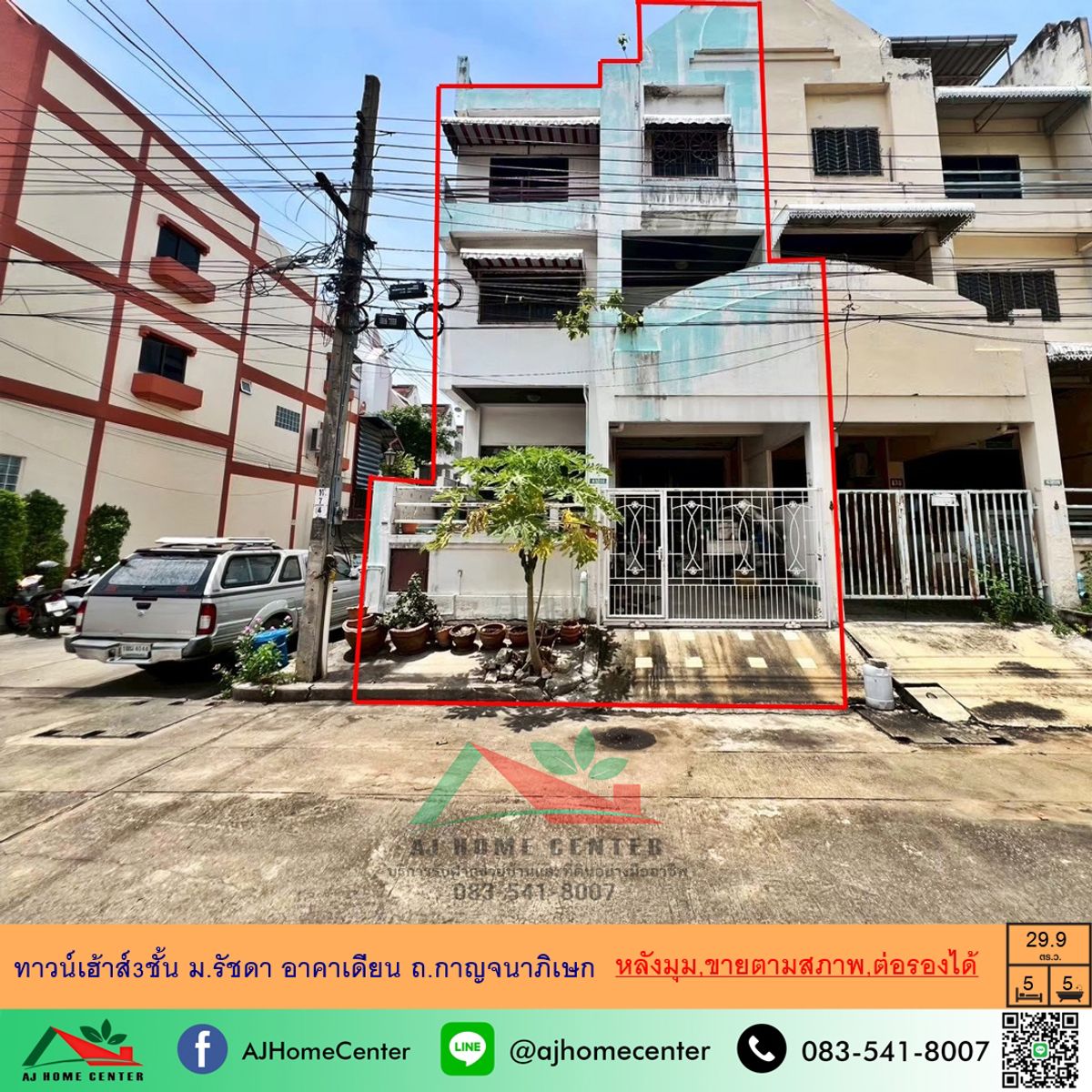 Sold as is, 3-story townhouse, 29.9 sq m., corner unit, Ratchada Arcadian University, suitable for purchase and renovation. Price ready to negotiate . 3-story townhouse, split-level interior, size 29.9 square meters, usable area 306 square meters 5 bedrooms, 5 bathrooms, 1 kitchen, 1 living room, 1 parking space . Property location: Ratchada Arcadian Village, Kanchanaphisek Road, Bang Bon District, Bang Khun Thian Subdistrict. Bangkok Project coordinates: https://maps.app.goo.gl/D7qij1ebZ5KJwJv6A . Selling price 2,490,000 baht . Highlights - 3-story townhome, corner unit, level interior, sold as is, suitable for purchase and renovation - The house is located on the main road of the project - The project is next to Kanchanaphisek Road. Near the Eastern Expressway Kanlapapruek-Bang Bon - Near the hospital, police station and many important places - Price negotiable - Free loan arrangement service by professionals . Facilities - Clubhouse - Swimming pool - Fitness - 24 hrs. security . Nearby places - Eastern Expressway Kanlapaphruek-Bang Bon - Makro - Rama 9 Expressway - Lotus Rama 2 - Central Rama 2 .