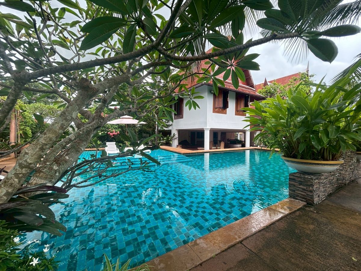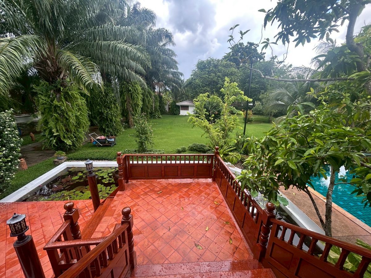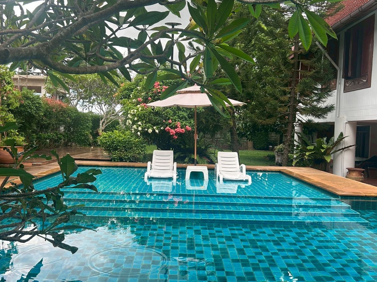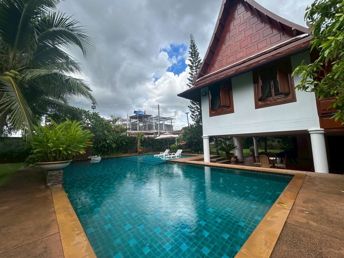 Single house for sale in contemporary style It is a pool villa in an area of ​​1-1-53 rai , 3 bedrooms, 4 bathrooms (not sharing the maids room With bathroom 2 Large living room, 2 kitchens , outdoor