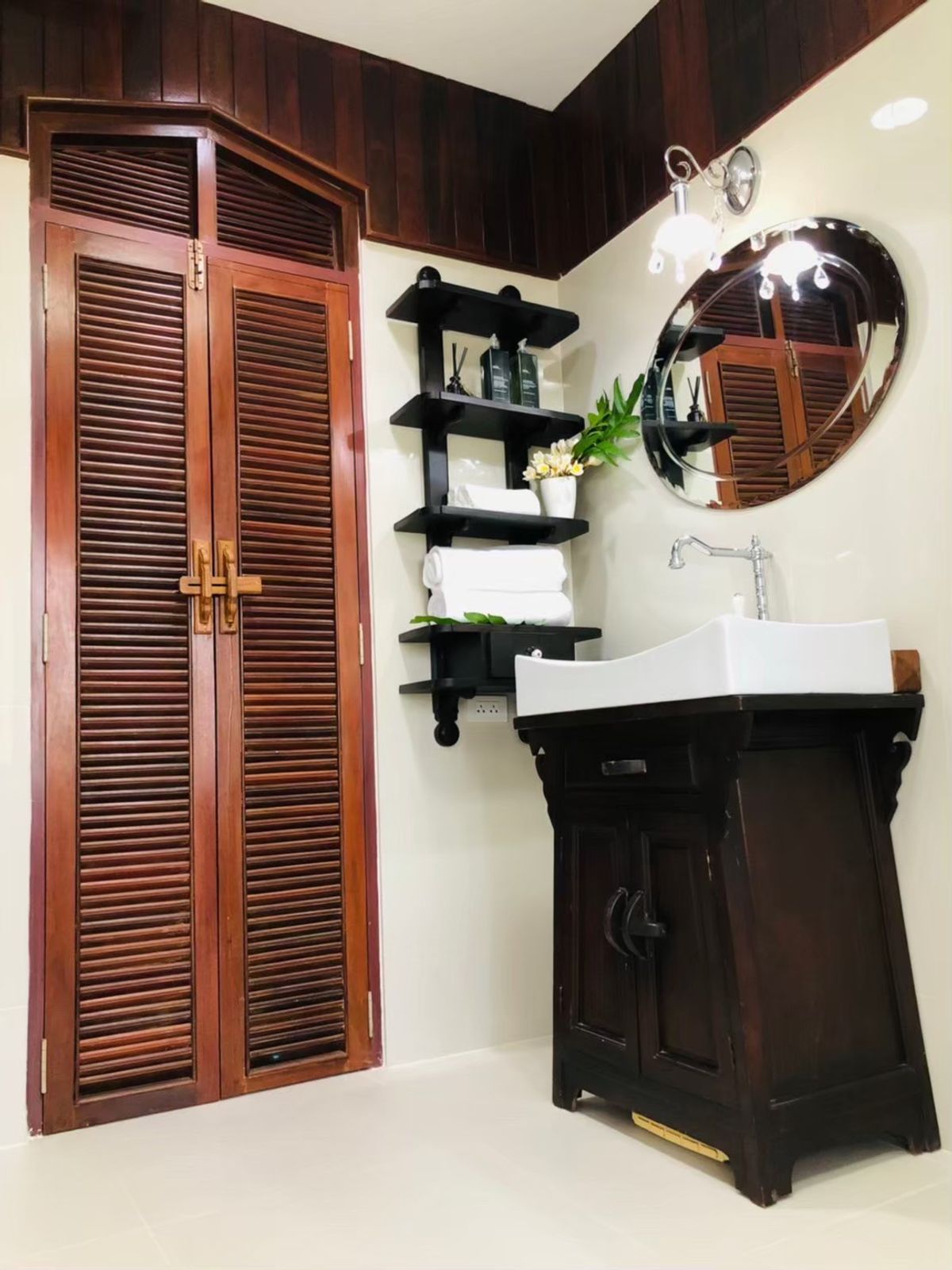 Single house for sale in contemporary style It is a pool villa in an area of ​​1-1-53 rai , 3 bedrooms, 4 bathrooms (not sharing the maids room With bathroom 2 Large living room, 2 kitchens , outdoor terrace , counter bar , quiet atmosphere. Not crowded nearby Siam Country Club golf course, approximately 4 kilometers away Big C Central Pattaya, approximately 8 kilometers away Big C Center, South Pattaya, approximately 9 kilometers away Central Pattaya, approximately 9 kilometers away Central Marina, approximately 10 kilometers away Terminal 21 Pattaya, approximately 11 kilometers away.