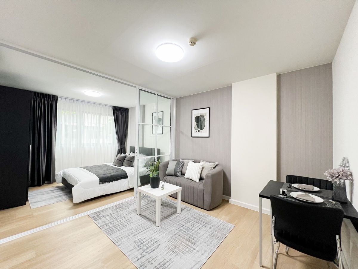 💥D Condo Ramintra, beautifully decorated condo in modern style. The most popular shade of gray with white trim. Quality furniture, beautifully decorated throughout the room. You can move in immediately 🎁