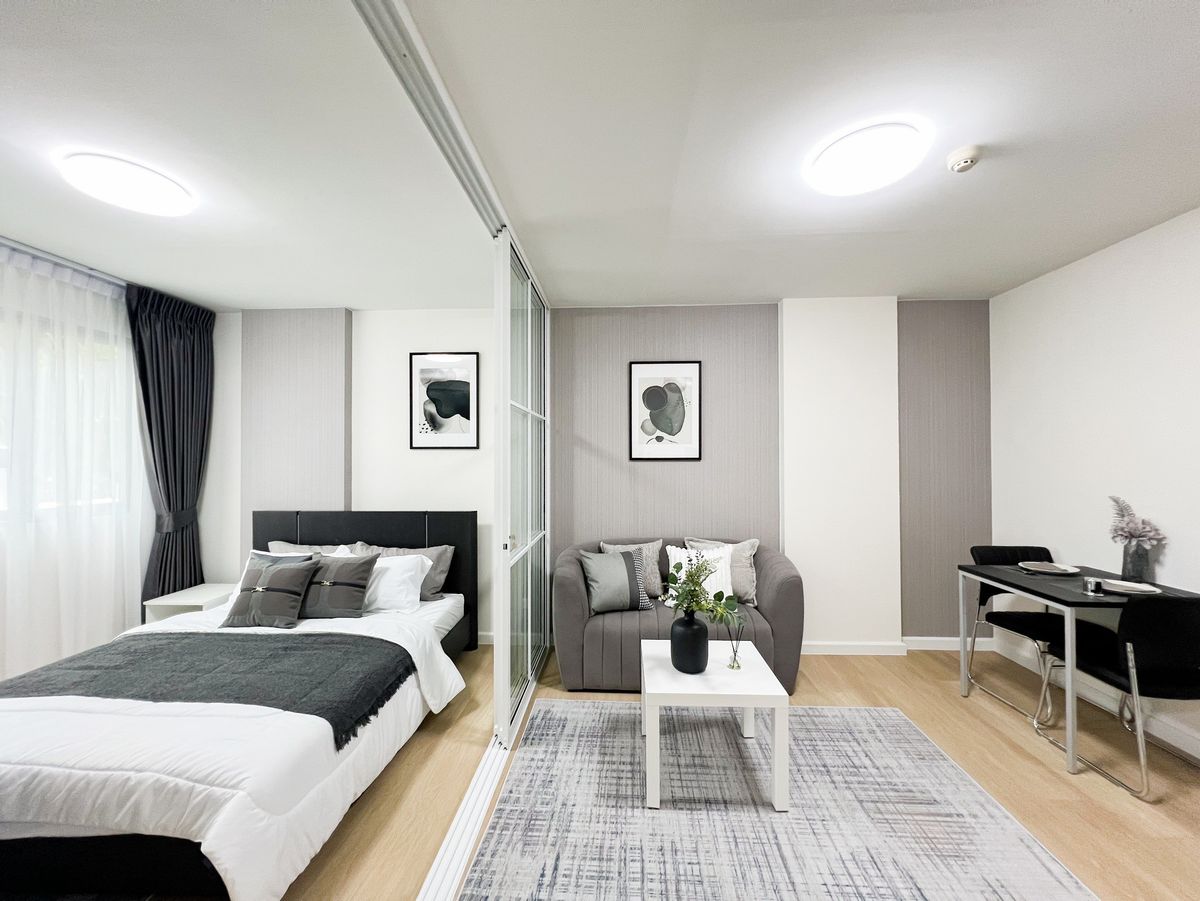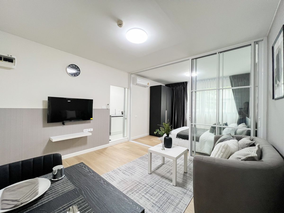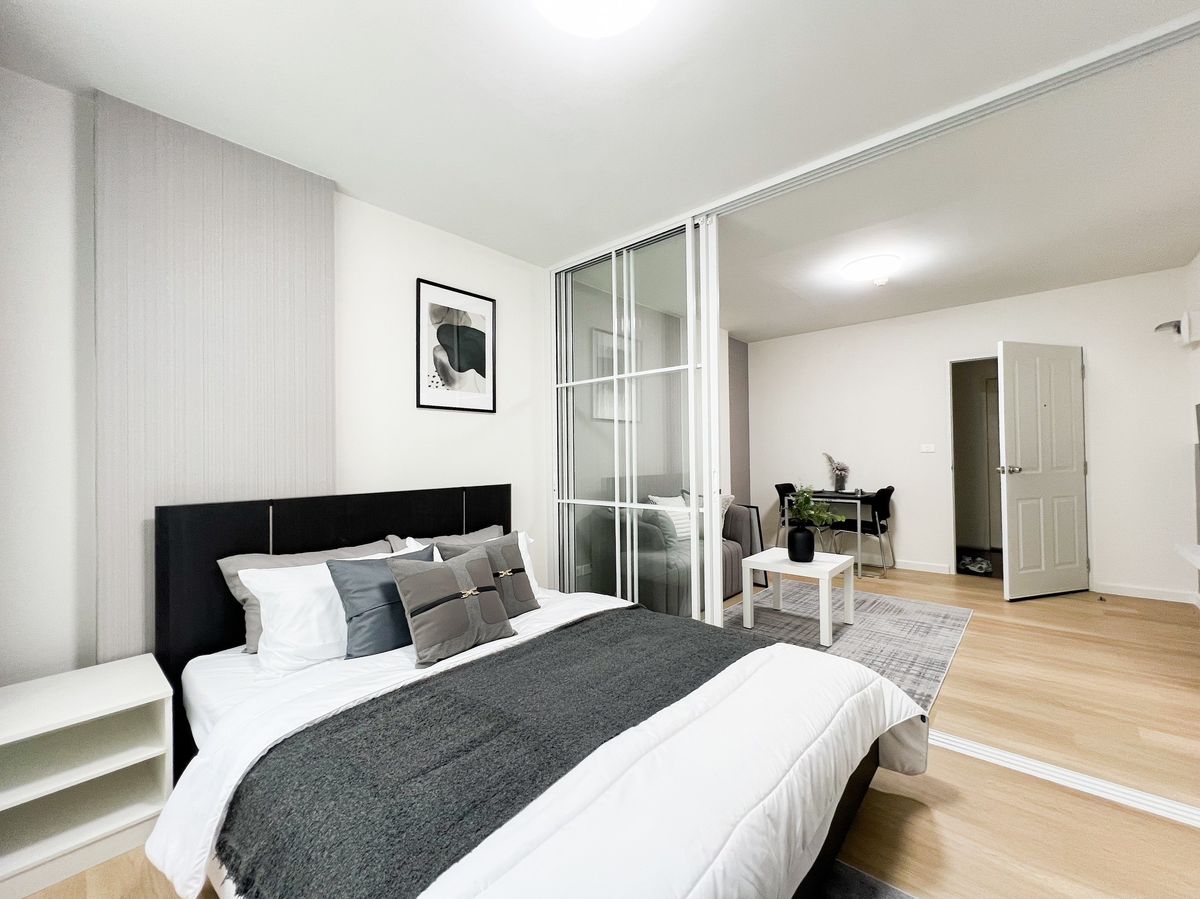 🔸 Room details: Usable area 31 square meters, 1 bedroom, 1 bathroom, Building C, 2nd floor 🔸 Furniture: - Living room/living room comes with TV with shelf, 2-seat sofa, 4 cushions, center table with decorations and carpet. Including a dining corner that is fully decorated - The bedroom comes with a large bed, large wardrobe, air conditioning, bedding with pillows. and a total of 7 cushions - The kitchen next to the balcony comes with a microwave, kitchen counter, sink with storage cabinets and kitchen shelves - Bathroom comes with quality sanitary ware installed with full functions, sink and water heater 🔸 Electrical appliances: TV, microwave, air conditioner and water heater 🔸 Facilities: swimming pool, fitness, security, CCTV 🚝 Nearby places: Big C, Tesco Lotus, Foodland, Central Ramindra, Fashion Ireland 📌If interested, inquire ☎️ Contact at Line ID: condorhu or contact phone number Contact number, Contact number