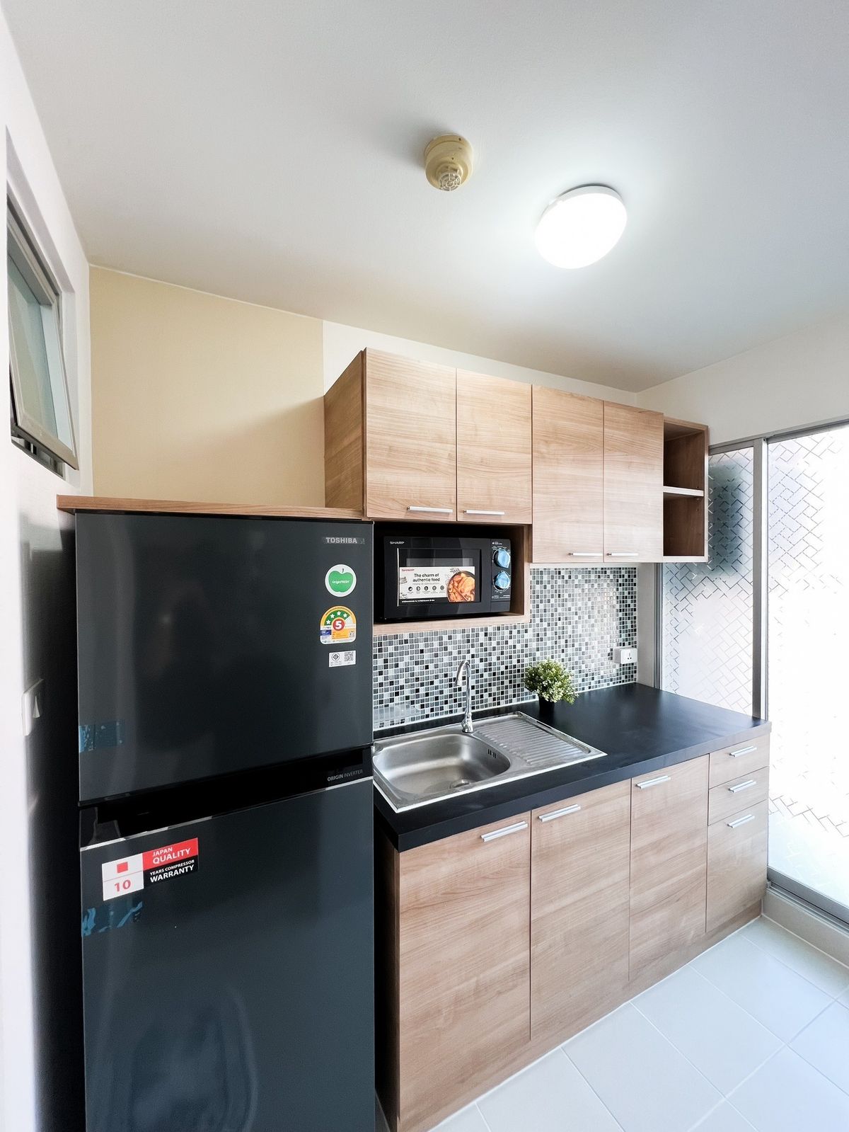 🔸 Room details: Usable area 31 square meters, 1 bedroom, 1 bathroom, Building A, 8th floor 🔸 Furniture: - Living room/living room comes with TV with shelf, mezzanine for storage, 3-seat sofa, 6 cushions, center table with decorations and carpet. Including a dining corner that is fully decorated - The bedroom comes with a large bed, large wardrobe, air conditioning, bedding with pillows. and a total of 6 cushions - The kitchen next to the balcony comes with a microwave, kitchen counter, sink with storage cabinets and kitchen shelves - Bathroom comes with quality sanitary ware installed with full functions, sink and water heater 🔸 Electrical appliances: TV, microwave, air conditioner and water heater 🔸 Facilities: swimming pool, fitness, security, CCTV 🚝 Nearby places: Big C, Tesco Lotus, Foodland, Central Ramindra, Fashion Ireland 📌If interested, inquire ☎️ Contact at Line ID: condorhu or contact phone number Contact number, Contact number